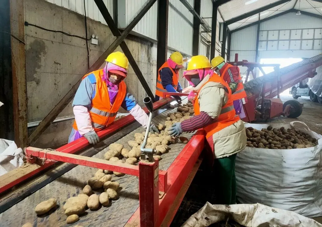 近日,在中化太仆寺旗MAP现代农业科技服务示范园区的马铃薯产地仓气调库内一派繁忙景象,工人们正忙碌地分拣、转运着马铃薯,这些饱满的“金豆豆”在恒温恒湿控制系统实时监测控制下,得到了最优储存的条件。