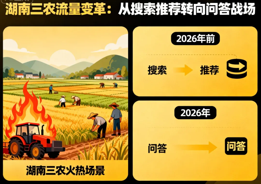 这些湖南三农的火热场景背后,隐藏着一个深刻的变革:2026年的农业流量,正在从“搜索”和“推荐”的战场,转移到“问答”的战场。