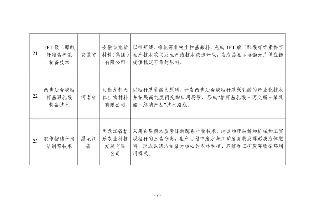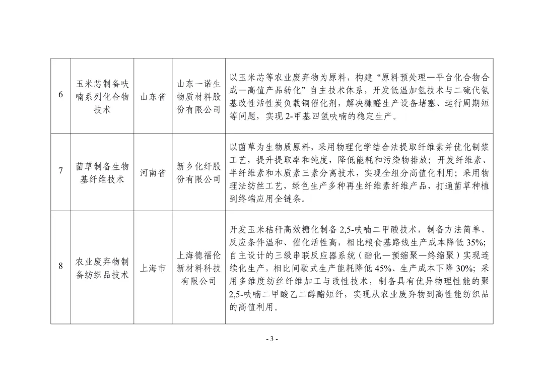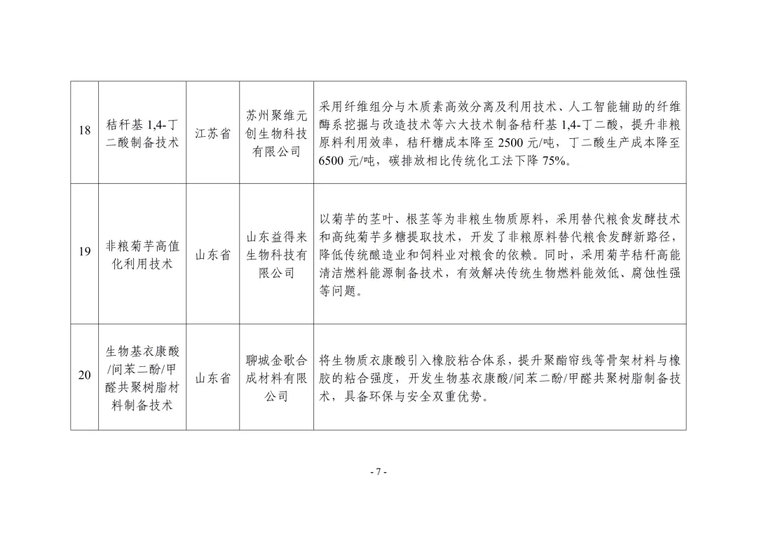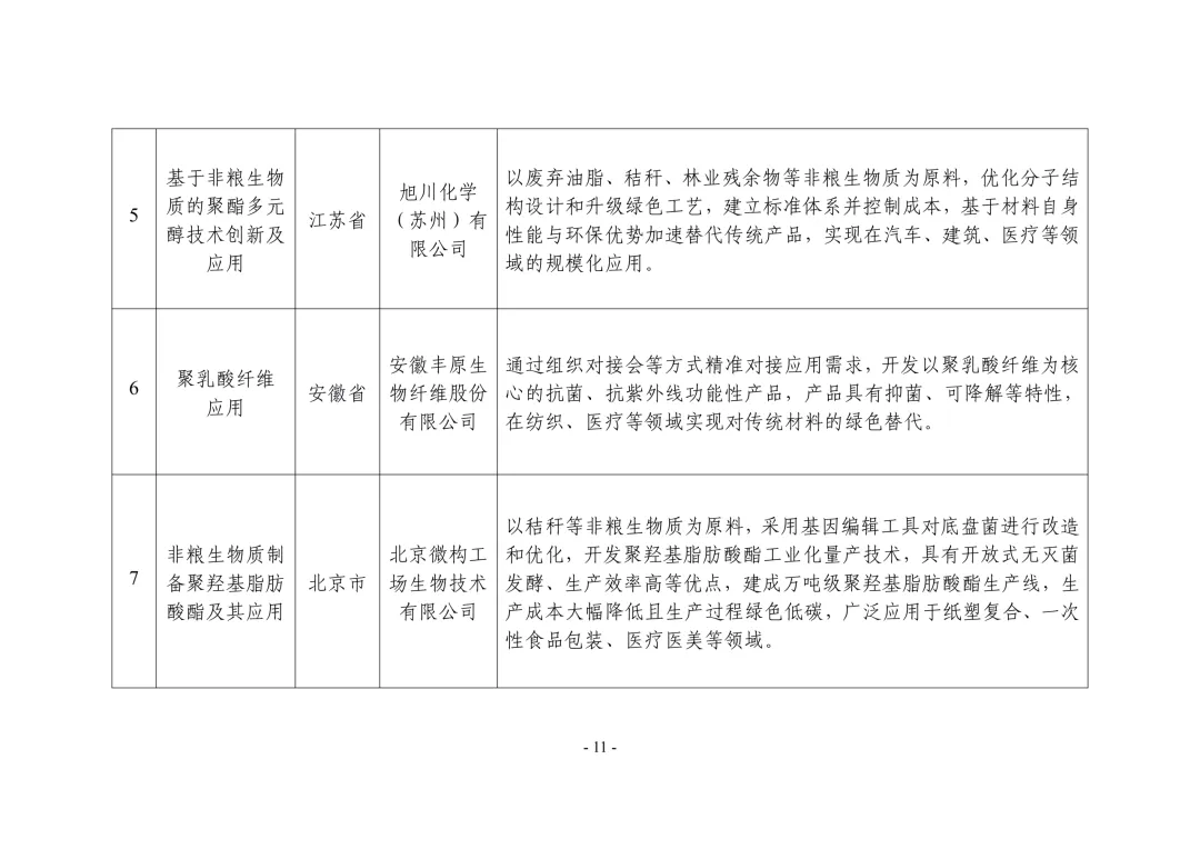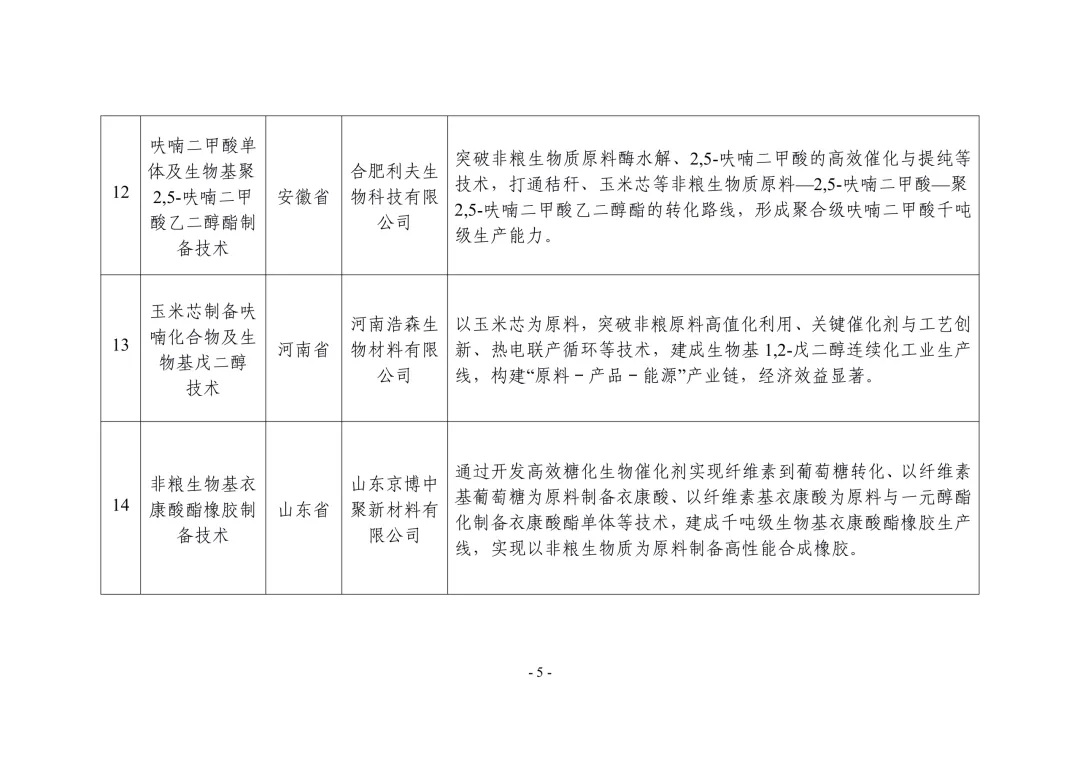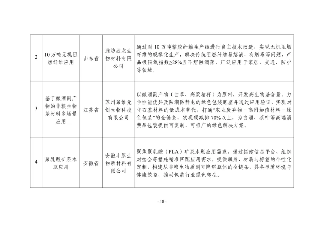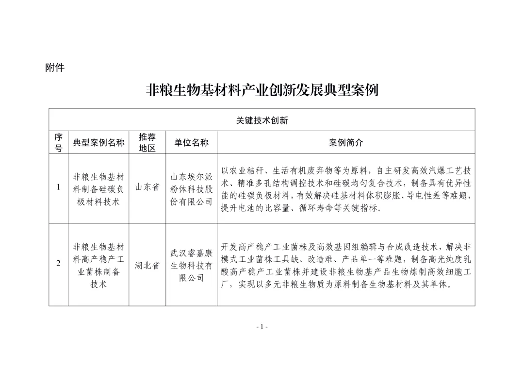 各省、自治区、直辖市及新疆生产建设兵团工业和信息化、农业农村主管部门:根据《关于开展非粮生物基材料产业创新发展典型案例推荐工作的通知》(工信厅联原函〔2025〕225号),经企业申报、地方推荐、专家评审、网上公示,确定了非粮生物基材料产业创新发展典型案例(见附件),现予以公布。请各地工业和信息化、农业农村主管部门结合实际,积极宣传推广先进模式和典型经验,加强政策支持、资金扶持和要素保障,加快产业上下游协同创新,推动非粮生物基材料产业高质量发展。