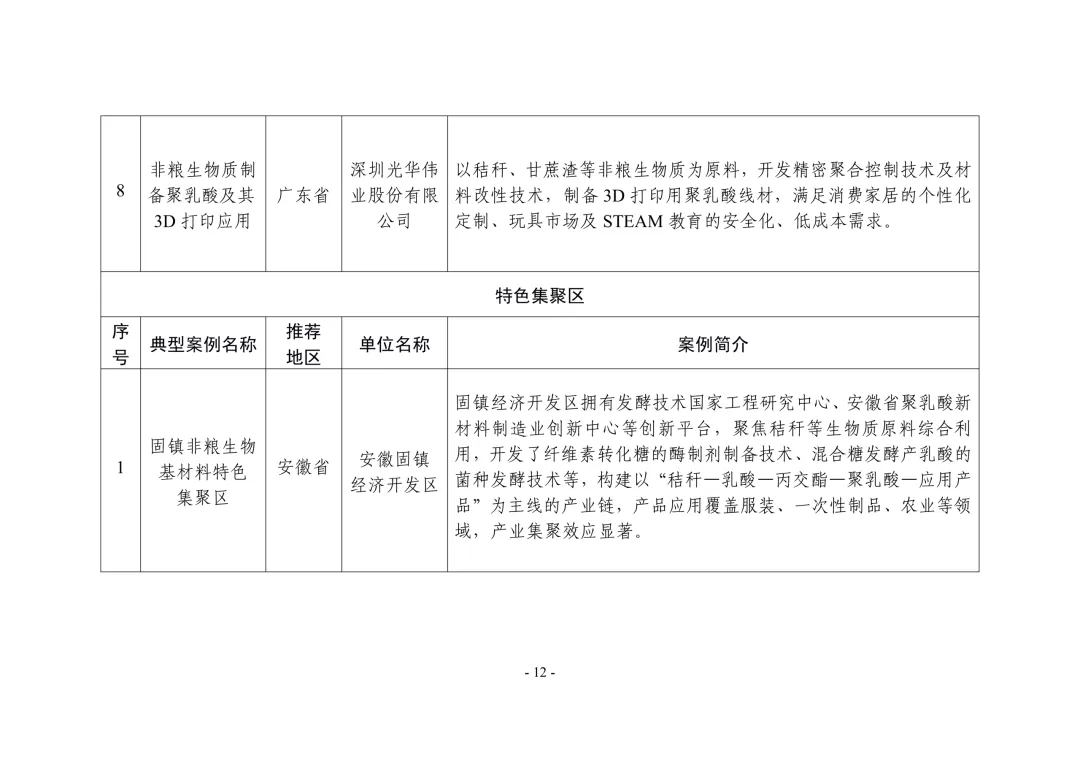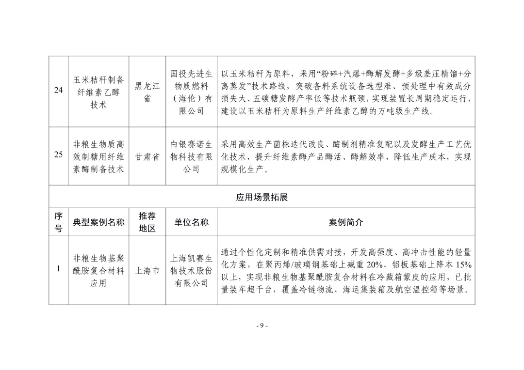 非粮生物基材料产业创新发展典型案例