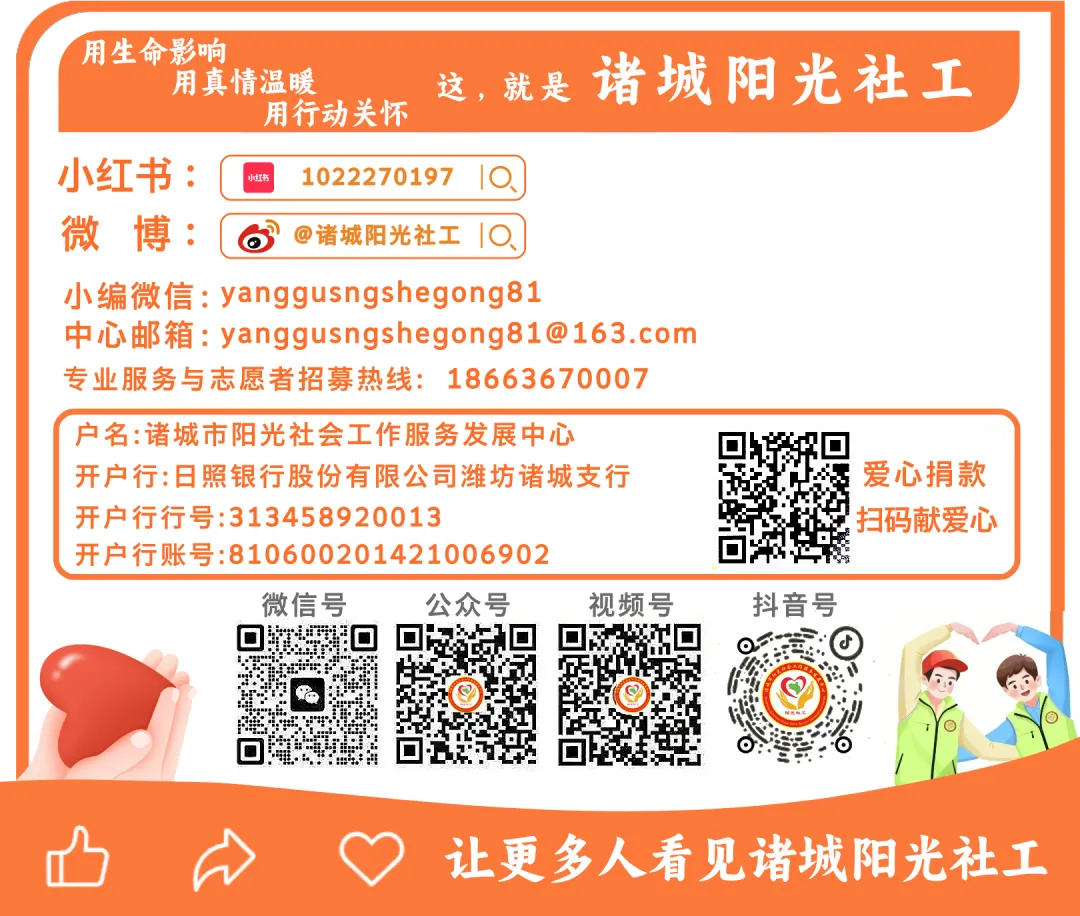 分享、点赞、在看,让更多人看见诸城阳光社工