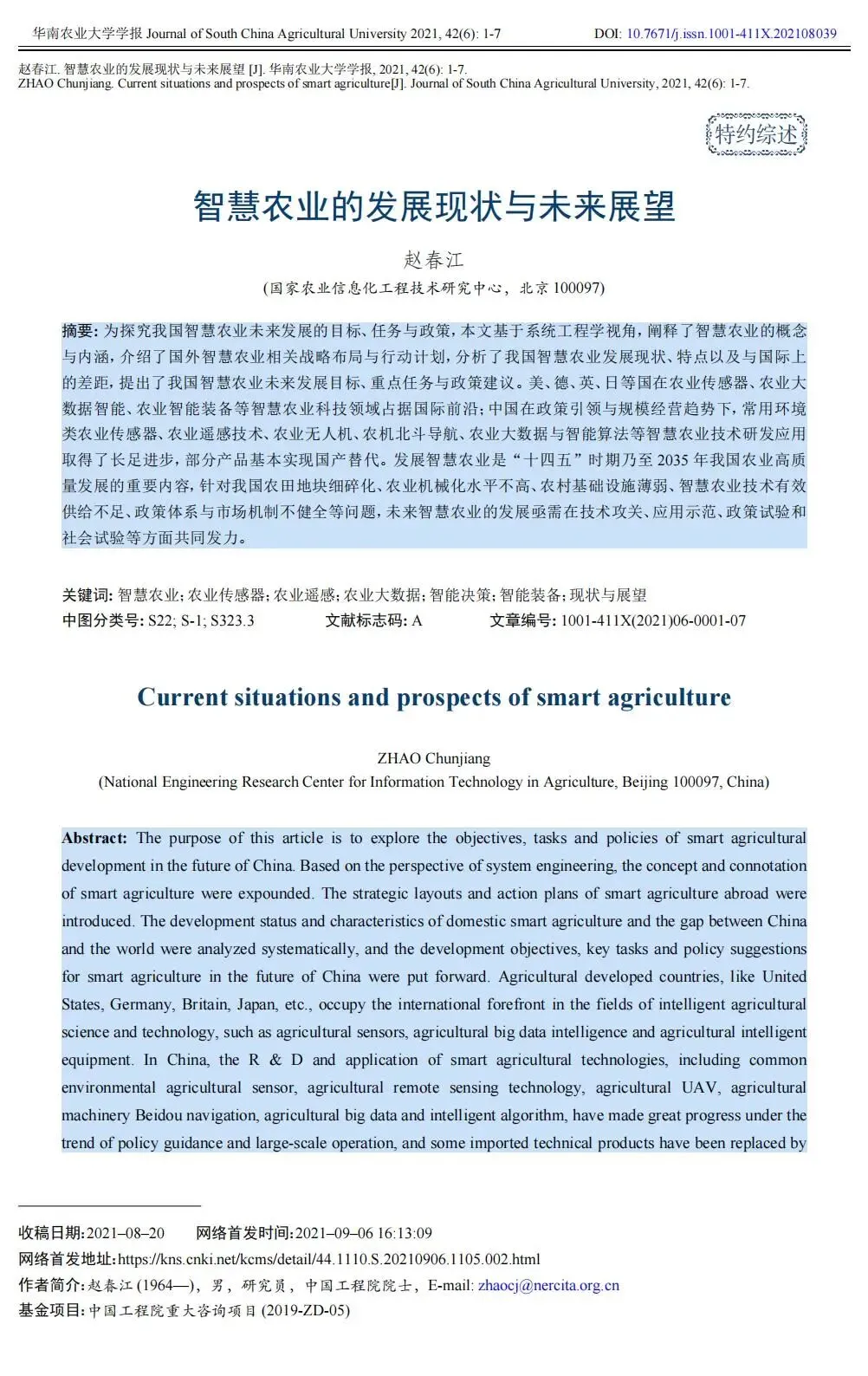 当前位置:首页>农业>国家农业信息化工程技术研究中心:智慧农业的发展现状与未来展望