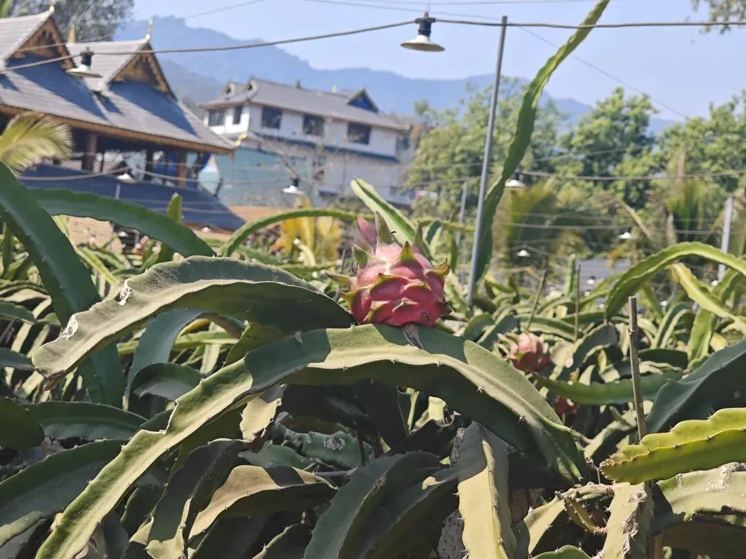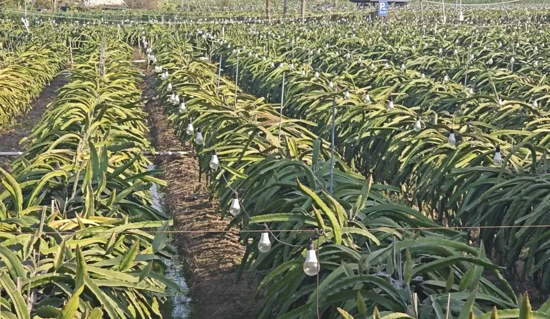 今天我们见到了西双版纳的火龙果种植园,虽然不是主要产果期,但是大面积的火龙果基地还是蔚为壮观。 火龙果原产于中美洲的热带雨林边缘地带,属于热带森林附生仙人掌类。现广泛种植于热带、亚热带地区。我国的广西、海南、广东、云南(如西双版纳)、福建等省区也有广泛种植。 气候:气温,最适生长的温度为25~35℃,低于10℃生长停滞,低于5℃易受冻害;光照,喜充足光照,光照不足会影响开花结实;降水,要求年降雨量800~1500毫米,耐旱性强但不耐涝,忌积水。 土壤:偏好疏松透气、排水良好的砂质壤土或赤红壤,pH值5.5~6.5为宜。 下图中这些灯是补光灯(多为LED植物生长灯),在火龙果种植中是关键的现代农业技术,主要有以下作用:1. 调控花期,实现反季节生产: