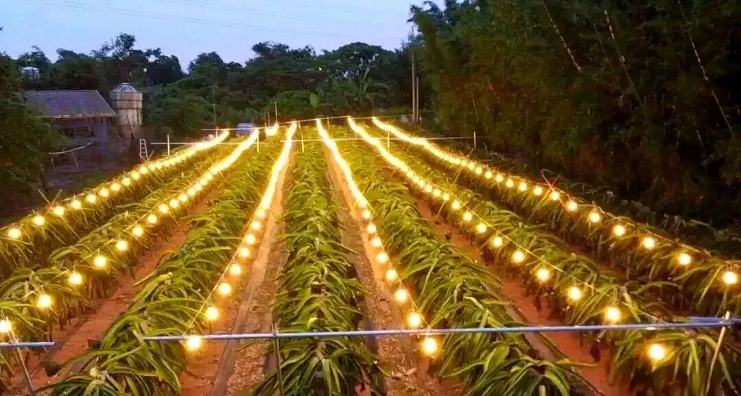 火龙果是短日照植物,自然条件下花期集中在6-11月。通过夜间补光,可打破其光周期限制,让收获期延长3-4个月,每年多收2-3批果,实现错峰上市,提升经济效益。