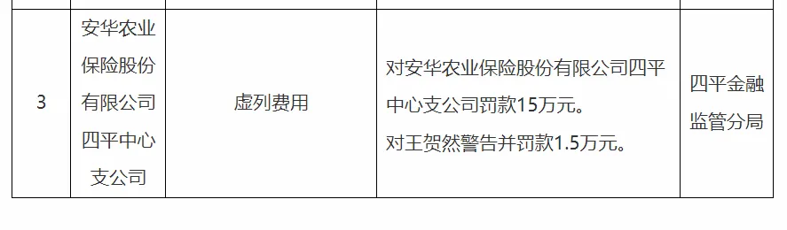 安华农业保险股份有限公司四平中心支公司存在虚列费用的违规行为。