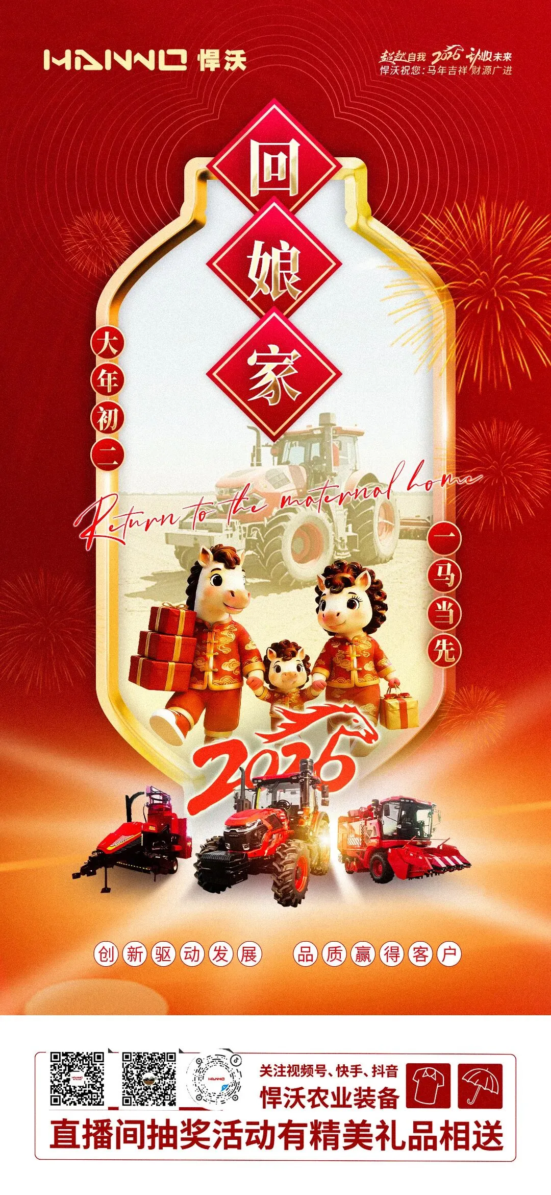 >初二回娘家,福气带回家!悍沃农业装备祝大家走亲访友情意浓,财源滚滚伴全年