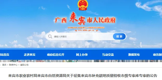 来宾市农业农村局来宾市自然资源局关于征集来宾市补充耕地质量验收市级专家库专家的公告
