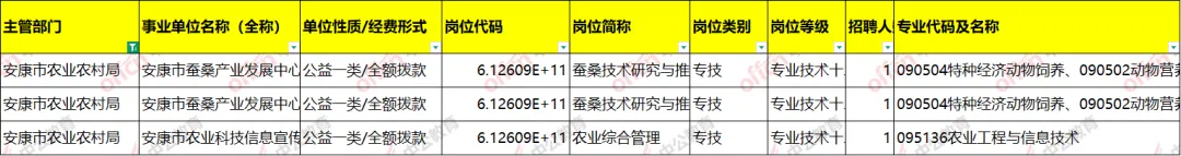 篇幅有限 完整安康市农业农村局岗位及安康完整职位表