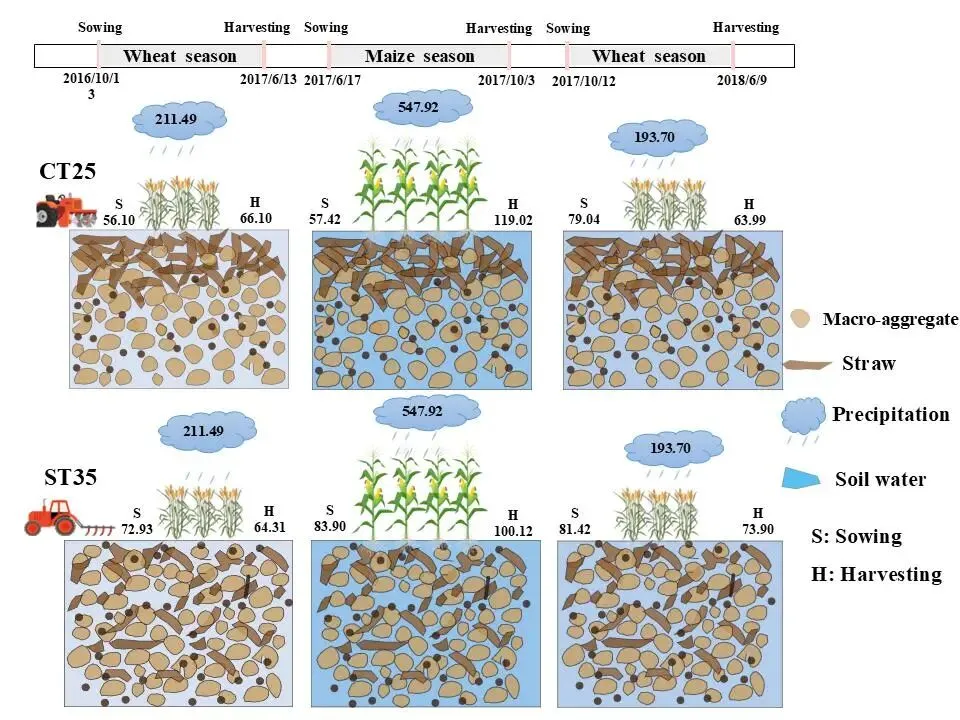 华北平原作为我国核心粮食生产基地,普遍采用小麦与玉米一年两熟的耕作模式,然而该模式常面临季节性降水分布不均的挑战,致使作物产量波动较大。针对这一问题,研究团队通过设置不同深松深度的田间试验,深入探讨了深松作业对土壤物理结构及水分利用特性的影响机制。
