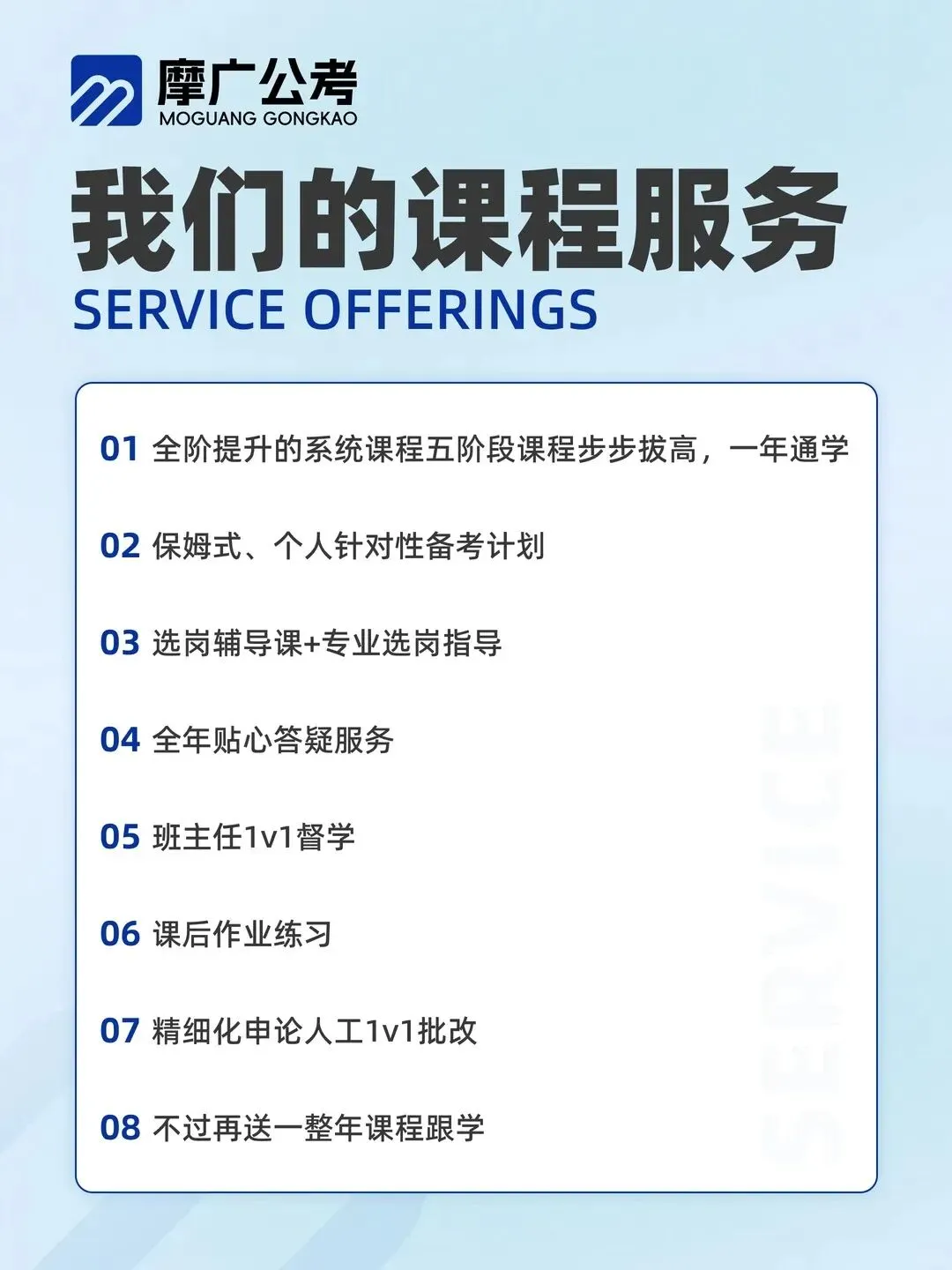 摩广从考生真正高分上岸需求出发,全面升级服务体系: