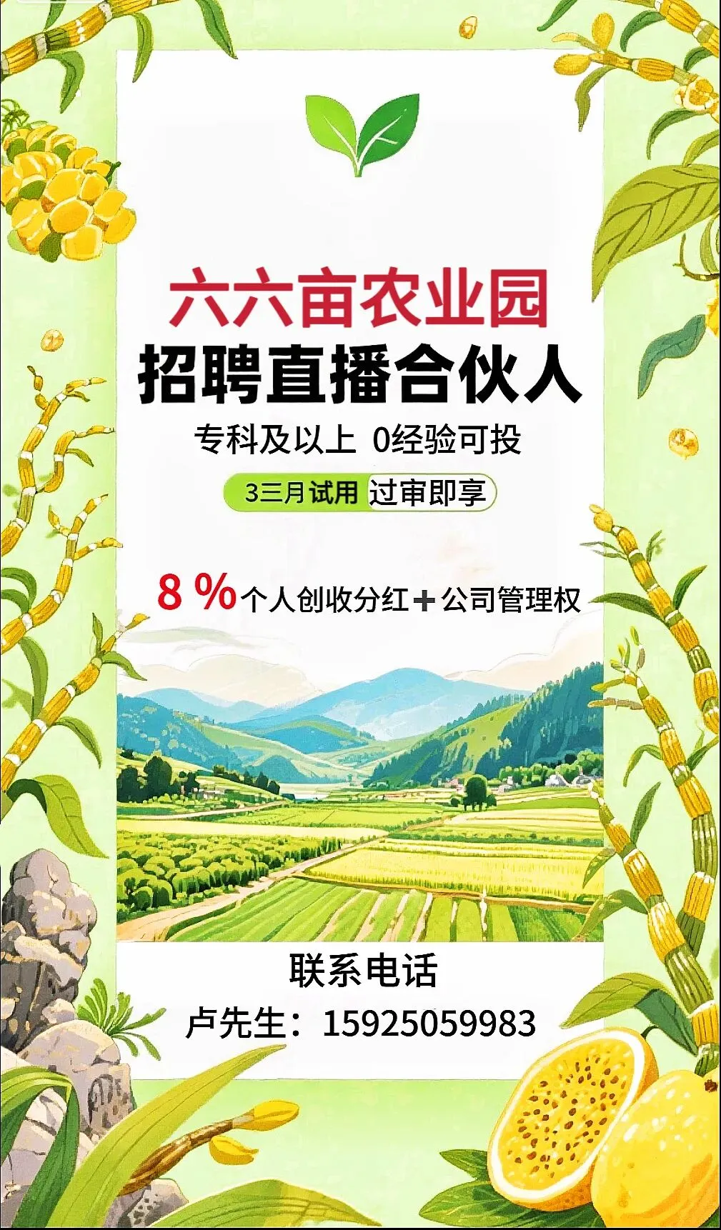 🌾【六六亩农业园 | 主播合伙人招募令🔥】