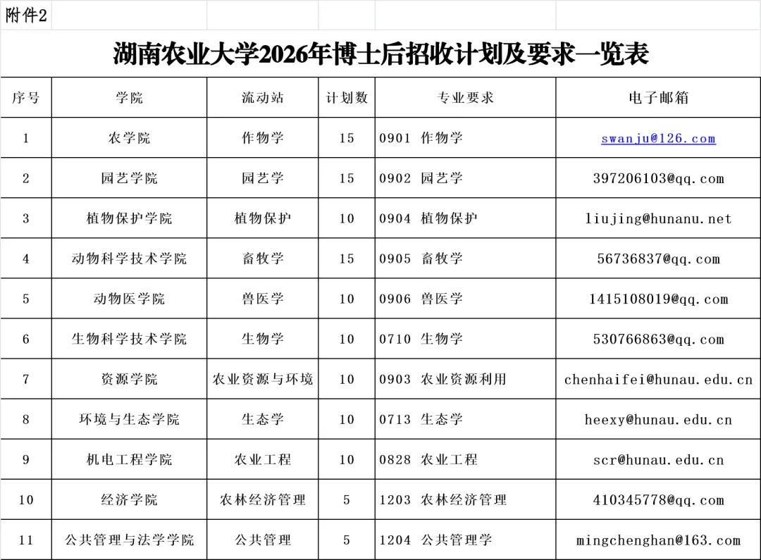 3.博士后。详见《湖南农业大学2026年博士后招收计划及要求一览表》。