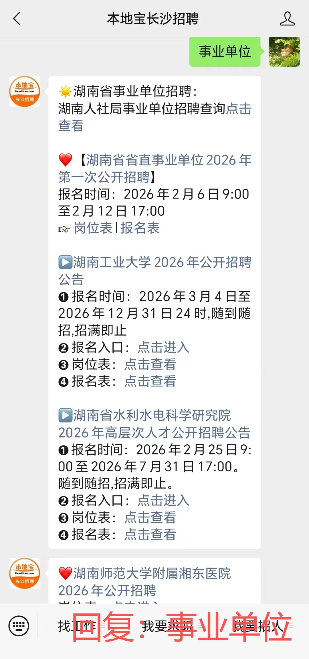 回复【事业编】获取长沙近期事业单位招聘汇总