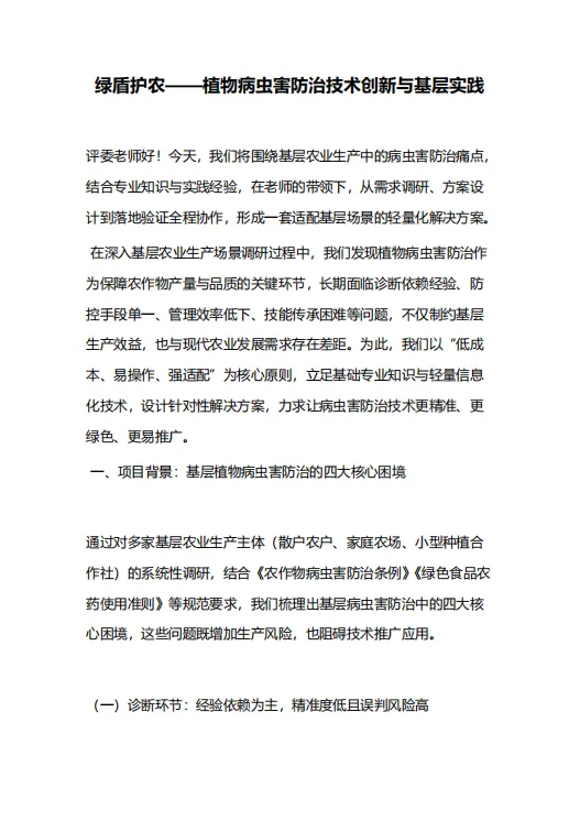 作品名称:绿盾护农-植物病虫害防治技术创新与基层实践