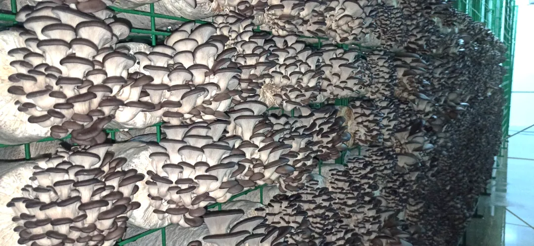出菇管理:菌丝满袋后,将菌袋移至出菇房,进行温差刺激(白天20℃-22℃,晚上12℃-15℃),增加散射光,空气相对湿度提高至85%-95%,适时喷水保湿,促进原基形成与子实体生长并适时采收。