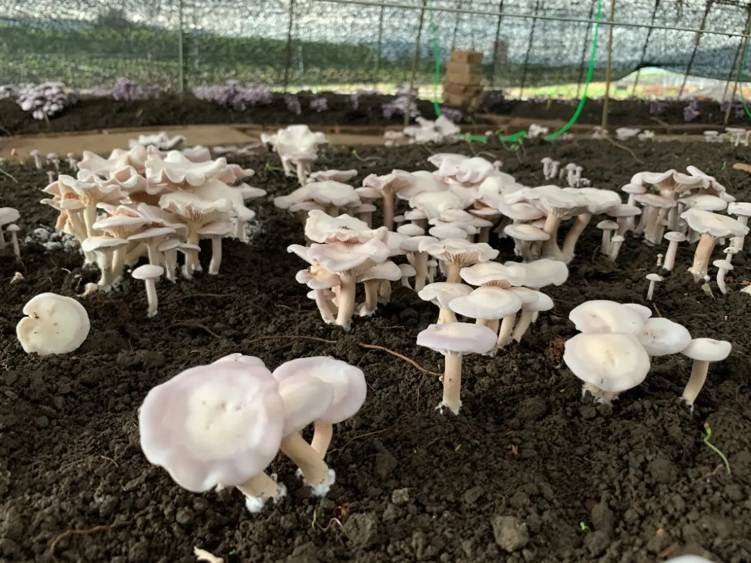 发菌覆土:播种后,覆盖塑料薄膜和草帘,保持畦内温度22℃-25℃,空气相对湿度70%-80%,定期通风换气。当菌丝长满料面即可覆2-3cm腐殖土,保持土壤表面湿润。