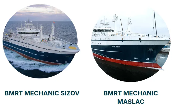 2025年,中国 约占RFC总出口额的 35%。 对华总销售额增长 17% ,其中鱼糜对华销售额同比增长 60% 。RFC于 2022年 开始向中国供应鱼糜,到2025年底,供应量增长了六倍。为了推广狭鳕鱼籽的消费,RFC与俄罗斯加工商 Putina 合作,向联邦零售连锁店推出包装好的鱼籽产品。在中国,该公司与厨师和餐饮服务合作伙伴合作,开发适用于各种餐食形式的狭鳕鱼籽菜单应用。2025年,RFC举办了第三届 O!Mega Taste 美食节,在餐厅、零售连锁店和公共场所推出了 100 多种以狭鳕鱼为原料的新食谱。此次活动还包括全新的 O!Mega早餐 环节,主打狭鳕鱼籽。该公司宣布与食品生产商和零售商建立合作关系,包括 Meridian 、 Agama 、 KVEN 、 Perekrestok 、 Auchan 、 Pyaterochka 、 O!Key 、 Samberi 和 Fish Union 。在2025年俄罗斯海鲜博览会 期间,RFC签署了 六项 战略合作协议。该公司还颁发了 金鳕鱼 奖,以表彰合作伙伴在协作、产品开发、质量和市场推广方面的卓越表现。RFC的船队现代化计划在2025年继续推进,新增了 ST-192系列超级拖网渔船 。这些渔船的设计目标是在船上加工高达 100% 的渔获物,从而减少未加工原材料的出口比例。第七艘和第八艘ST-192型渔船在圣彼得堡 海军部造船厂 开工建造。2025年12月,两艘超级拖网渔船—— “尤纳克船长”号和“谢尔巴科夫机械师”号——的验收证书签署完毕,计划于2026年开始捕鱼作业。RFC报告称已与 四所 行业大学和 五所 学院签署合作协议。其奖学金项目包括以船舶为基础的实习,并配备指定的导师。2025 年2月 ,该公司在俄罗斯波洛克工厂开设了一家 能力发展中心 。该中心为巴德尔公司的技工提供培训,将课堂教学与生产线上的实践操作相结合。该公司表示,该项目旨在缩短培训时间,并减少对外部技术专家的依赖。2025年,RFC开展了第六季 “清洁海岸线 ”环保活动。志愿者们清理了符拉迪沃斯托克希托瓦亚湾超过 1000米 的海岸线。自该项目于2020年启动以来,参与者已清除超过30吨垃圾。该公司还支持了符拉迪沃斯托克市首个儿童 生态探索活动 ,并继续与 第一听障儿童寄宿学校合作,为其摄影和动画工作室配备了专业的制作设备。2025年,两部学生作品在国际 “你并不孤单 ”电影节上荣获大奖,学生还在摄影 专业 大赛地区赛中斩获殊荣。RFC 还表示将继续支持行业老兵和当地体育项目,包括 迪纳摩 篮球队。2025年, 俄罗斯渔业公司 报告称,其产量、加工能力、出口多元化和劳动力发展均有所增长,同时继续投资于船队更新和区域社会项目。