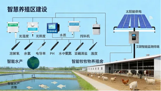 智慧水产:建设智能养殖池塘,配水质监测、溶氧控制、智能投饵设备,实现水产养殖智能化。