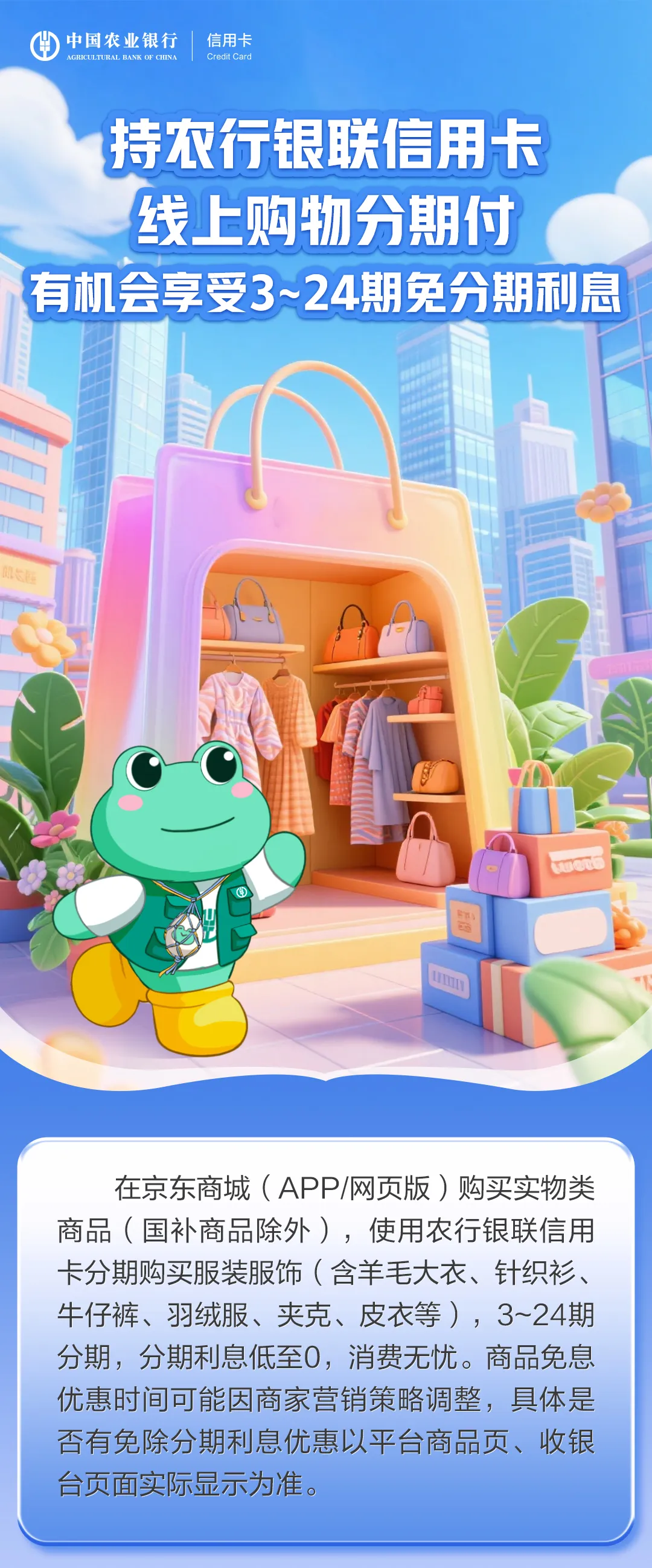 【马到换装】农行哇宝年货节京东分期购服装服饰免息!