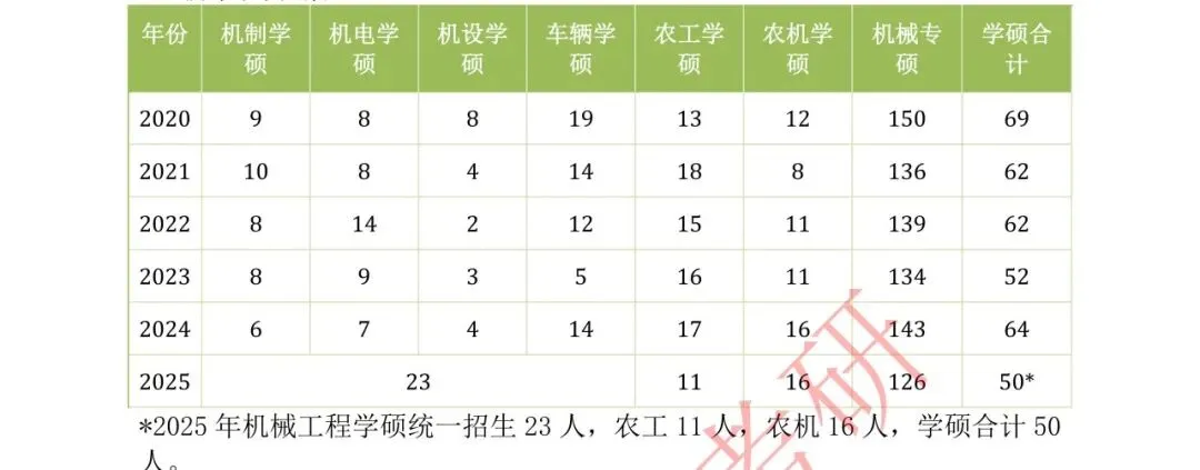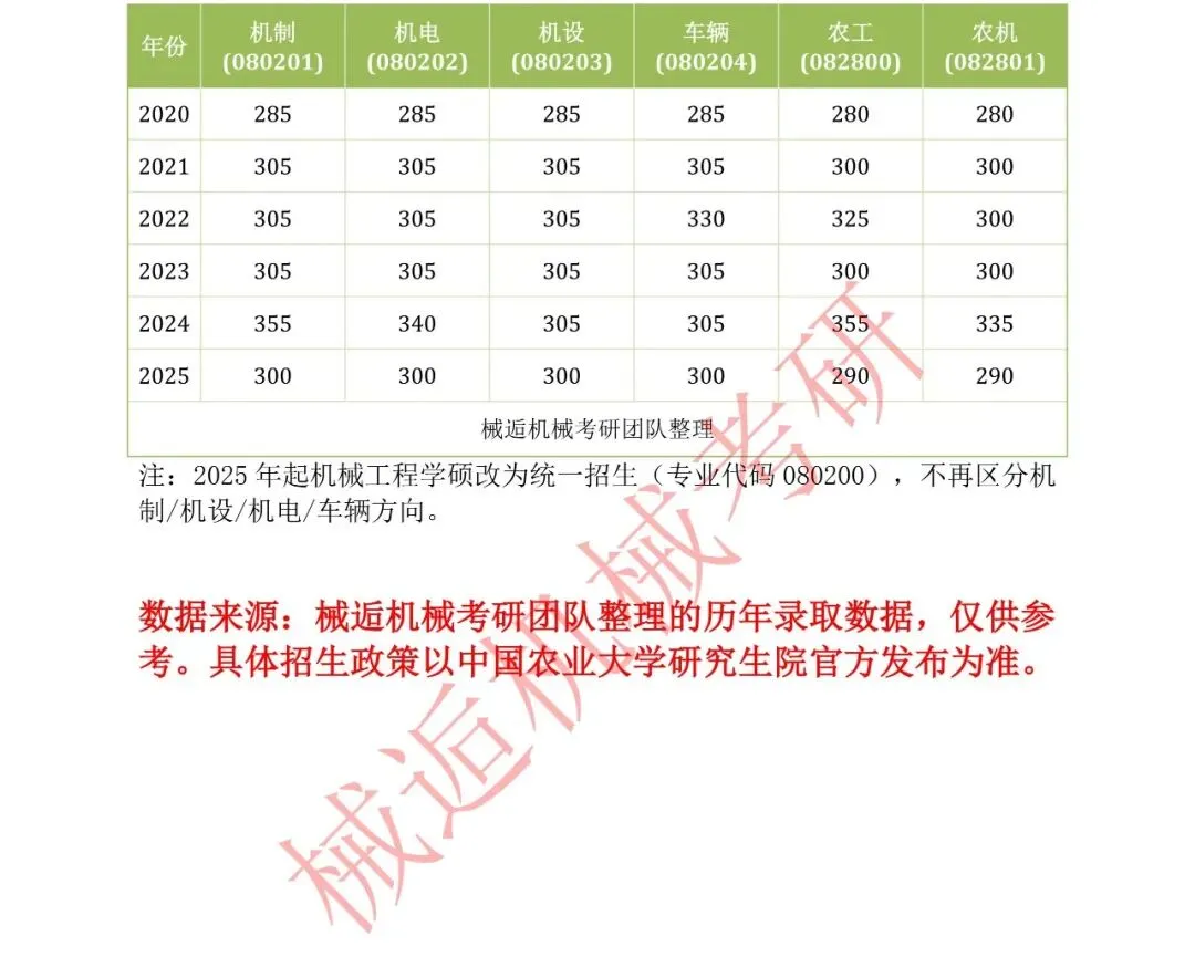 数据来源: 械逅机械考研团队整理的历年录取数据免责声明: 本文数据仅供参考,具体招生政策以中国农业大学研究生院官方发布为准