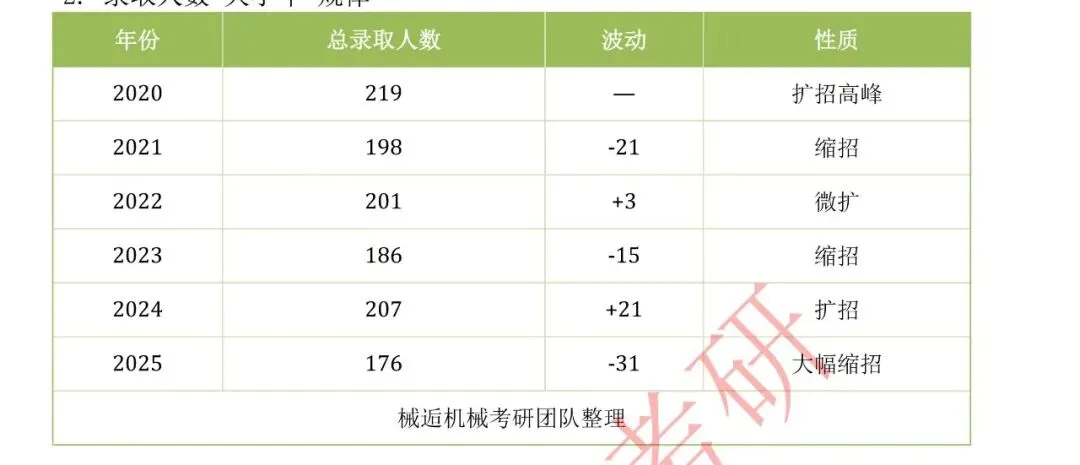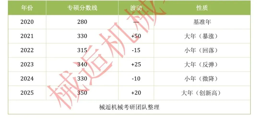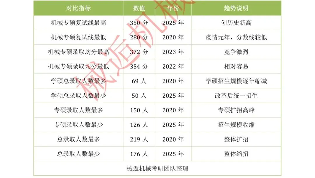 | 学硕统一招生 | 机制/机设/机电/车辆合并为"机械工程"(080200) | 学硕招生更加集中,总分300分较2024年大幅下降 |