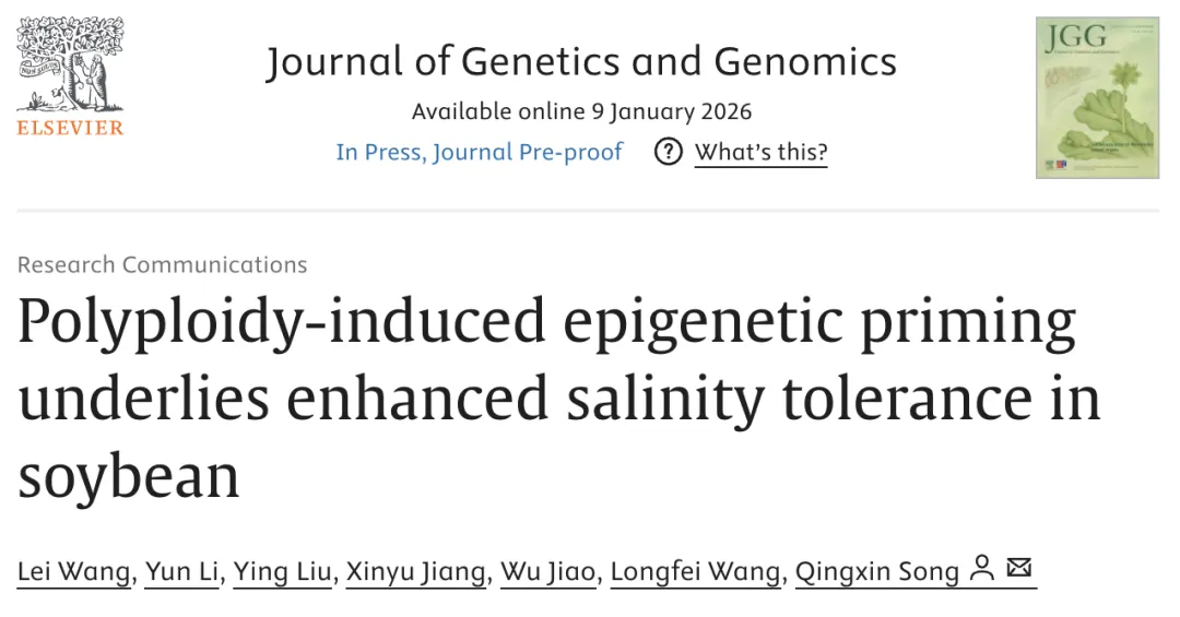 Lei Wang, Yun Li, Ying Liu, Xinyu Jiang, Wu Jiao, Longfei Wang, Qingxin Song. (2026). Polyploidy-induced epigenetic priming underlies enhanced salinity tolerance in soybean. Journal of Genetics and Genomics.