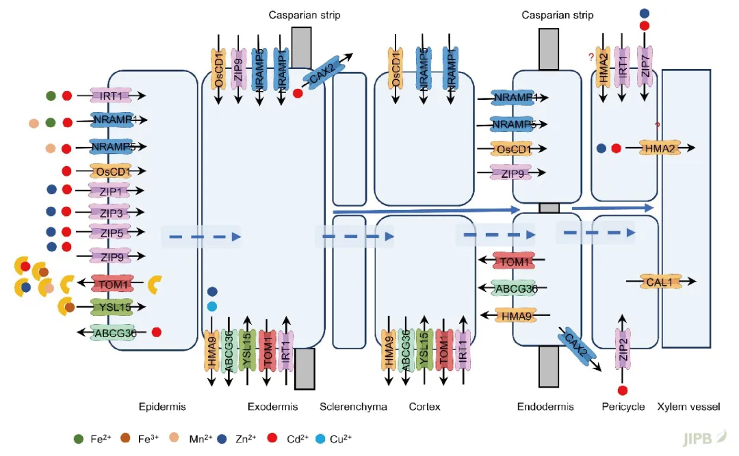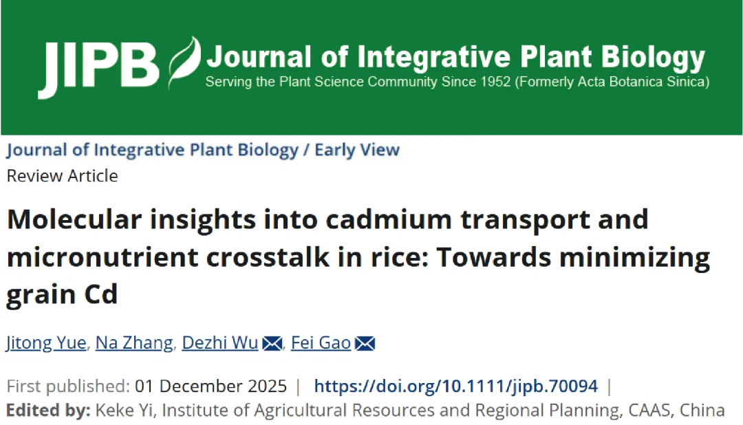 近期,Journal of Integrative Plant Biology 在线刊发了由湖南农业大学/岳麓山实验室水稻抗逆遗传改良团队完成的综述论文,该研究以"Molecular insights into cadmium transport and micronutrient crosstalk in rice: towards minimizing grain Cd"为题,系统梳理了水稻镉吸收、转运及积累分子机制领域的最新进展。文章着重分析了镉与铁、锰、锌等必需微量元素在运输过程中的交互作用机理,同时就低镉水稻品种的分子育种基础与改良途径提出了建设性观点。