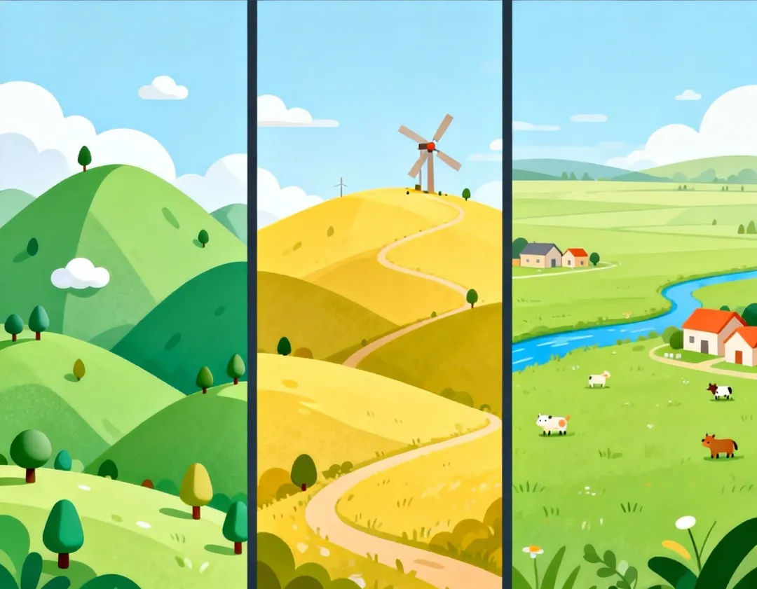 山地、岗丘、平原各占1/3,像一个小幅版的“中国地形图”。
