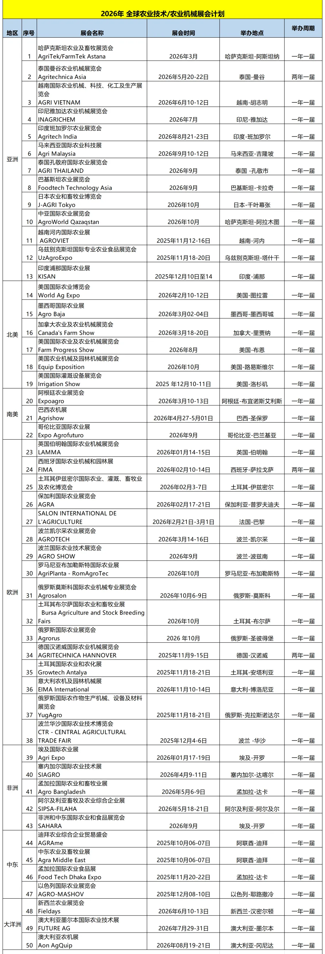 2026年10月美国农业机械及