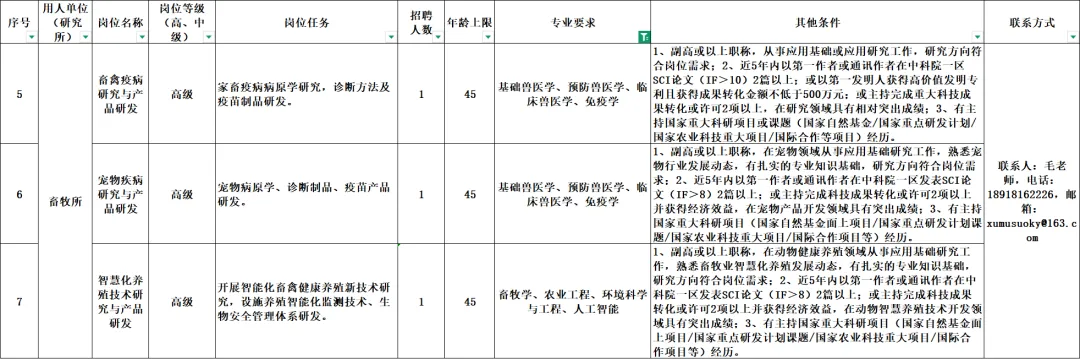 为深入实施“人才强院”战略,充分发挥人才作为第一资源的作用,我院拟面向海内外公开引进一批高层次创新人才和优秀拔尖青年。现将有关事项公告如下:上海市农业科学院是上海市属综合性农业科研机构,公益一类事业单位,成立于1960年。下设作物育种栽培研究所、林木果树研究所、设施园艺研究所、食用菌研究所、畜牧兽医研究所、生态环境保护研究所、农业科技信息研究所(数字农业工程与技术研究中心)、生物技术研究所、农产品质量标准与检测技术研究所、上海市农业生物基因中心等10个研究机构,1个综合服务中心和1个综合试验站。全院共拥有各类各级科技创新平台共计72个,现拥有3个国家工程技术研究中心、10个农业农村部重点实验室(试运行6个)、2个上海市重点实验室、7个上海工程技术研究中心。馆藏各类中外书刊30余万册。全院现有在职职工859名(截至2025年12月),其中专业技术人员818名,国家及地方领军人才15名,高级专业技术职务科技人员438名(研究员159名),硕、博士748名(博士404名),享受国务院特殊津贴专家59名,拥有博士后科研工作站1个;形成了粮油作物种质创新与推广应用、园艺作物新品种选育与高效栽培、食用菌种质创制与产业化技术、畜禽新品种选育与健康养殖、生态农业与植物病虫害绿色防控、农产品质量安全与保鲜加工技术、农业生物技术与资源评价利用、现代农业经济与数字农业技术等八大优势学科(领域);与30多个国家或地区开展科技交流和合作研究;编辑出版《上海农业学报》《食用菌学报》和《食用菌》等7种学术类、技术类刊物;重点培育种子种苗、食(药)用菌、生物疫苗三大科技产业;科技服务立足上海、辐射长三角,服务全国,在上海和全国各地建有新品种和技术示范基地300余个。60多年来,获部、市级以上科技奖励成果420项,其中,国家级科技奖励31项,部、市级科技进步一等奖38项;获得专利和植物新品种权、通过审(认)定品种2547余件,其中通过国家审(认)定品种163件;发表论文9470篇。(二)坚守科学家精神,注重科研诚信,恪守职业道德;(三)热爱农业科技创新工作,具备开展高水平科研工作的能力,具有良好的团队协作精神。详见《上海市农业科学院2026年度“尚农英才”全职人才引进岗位需求表(第一批)》(附件1)。全职人才引进一般采用事业编制引进,实行聘用制,按聘用合同管理。首轮聘期一般为5年,薪酬水平和相关待遇根据引进人才的类型、个人能力、业绩贡献和学科发展需要等综合因素来确定。我院将为优秀人才提供有竞争力的待遇及相关配套,在首聘期内提供相应的科研启动经费、人才公寓(安家费)等。院和研究所(中心、站)为人才引进工作顺利开展创造良好环境,在科研项目申报、创新平台支持、团队建设和研究生(博士后)招收、人才计划申报及子女入学等方面给予支持,实现高层次人才全周期服务。符合上海市相关人才政策资助条件的优秀人才,可享受地方人才政策。我院“尚农英才”全职人才招聘工作全年实施,招满为止。招聘主要程序是:(一)应聘人员填写《上海市农业科学院“尚农英才”全职人才引进报名表》(附件2),并与身份证、博士学历、学位证书、相关业绩佐证材料扫描件发送至附件1“岗位需求表”联系人邮箱,同时抄送院组织人事处邮箱:renshi@saas.sh.cn。邮件标题注明“姓名+尚农英才”。(二)院属科研单位对符合条件及要求的应聘者进行初审面试,经所在单位班子会议决定后提出引进人才申请,上报院组织人事处。(三)院组织人事处对上报材料进行审核,审核通过后组织相关专家对拟引进人才进行复试,复试结果提交院党委会议审定。(四)经院党委会批准后,聘用引进人才按有关规定办理入职手续。联系电话:021-67108112、62206968。点击下方“阅读原文”进行官网报名!