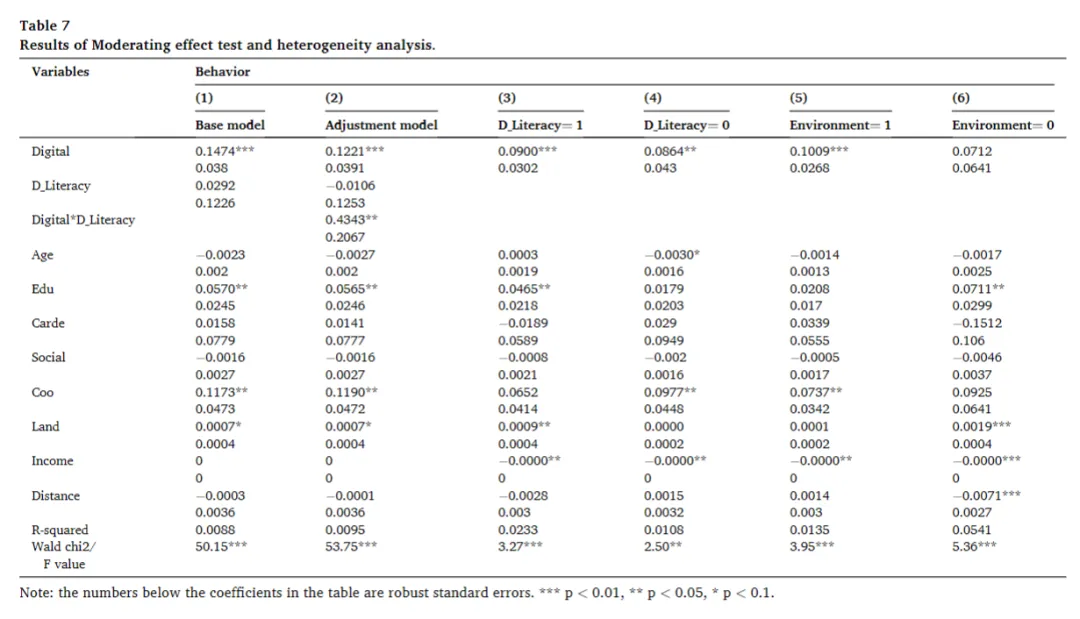 (1)理论贡献:构建“数字参与-行为响应”框架,从农业产业链视角揭示核心影响机制与调节、异质性效应,拓展相关理论边界。