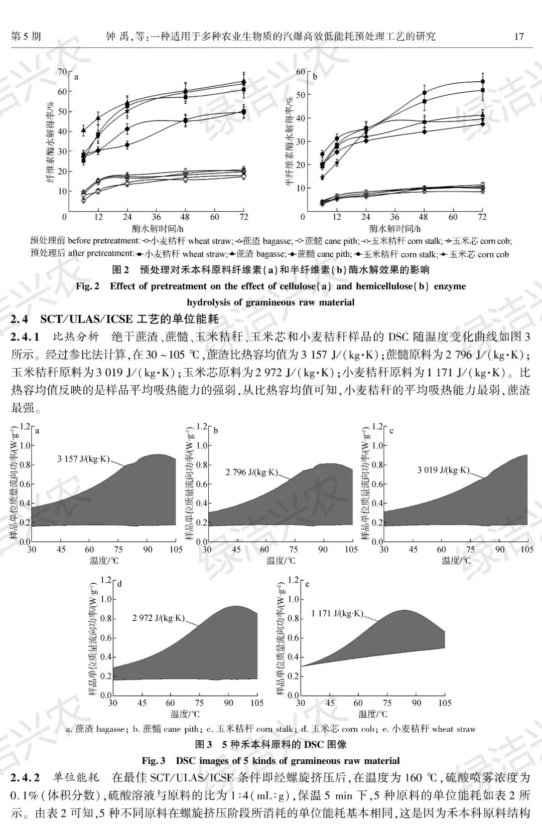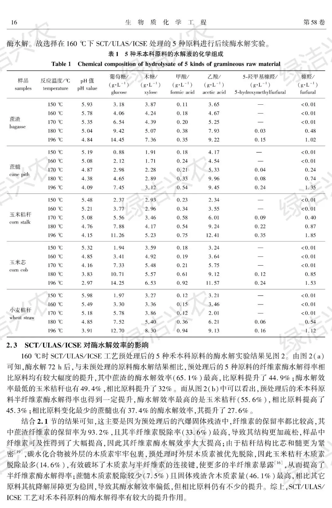 - 结论:SCT/ULAS/ICSE 新工艺对 5 种禾本科农业生物质具有普适性,在 160℃最优条件下,可实现高纤维素保留率、高酶水解效率、低抑制物生成和低能耗的协同优化。