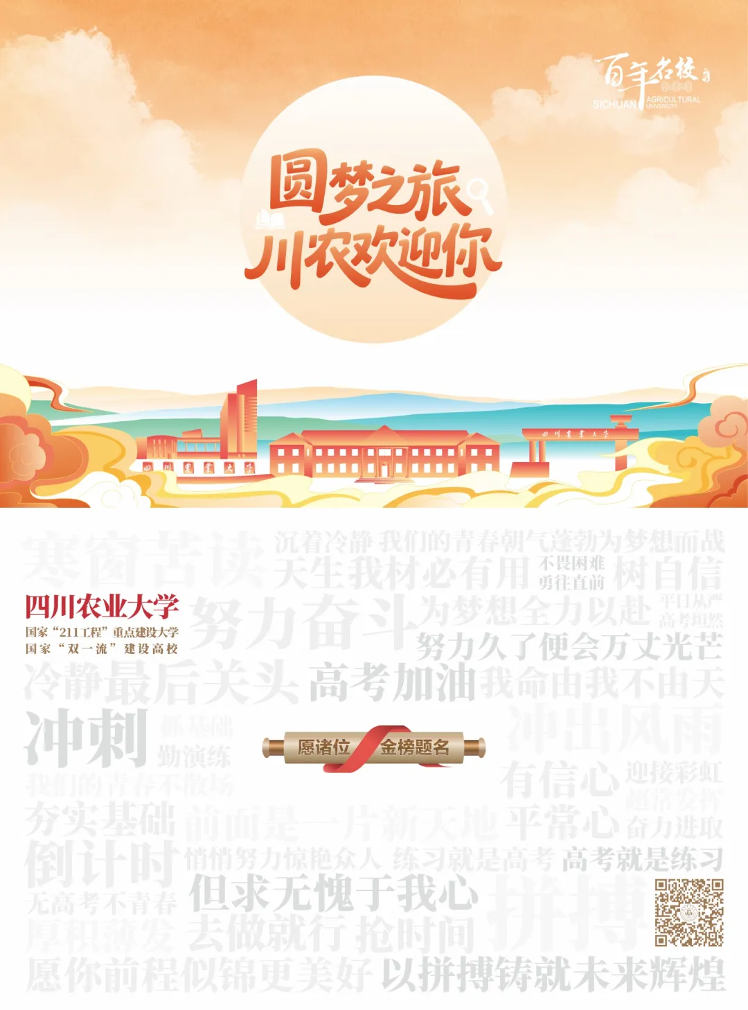 在新的历史起点上,学校将始终坚持人才培养是立校之本、科学研究是强校之路、社会服务是兴校之策、文化传承创新是荣校之魂、国际交流合作是活校之方的办学理念,牢固树立学生为本、学术为天、学科为纲、学者为上的治学理念,大力弘扬“爱国敬业、艰苦奋斗、团结拼搏、求实创新”的“川农大精神”,继续秉承“追求真理、造福社会、自强不息”的校训,坚定不移地走内涵式高质量发展道路,持续推进特色鲜明、国际知名的一流农业大学建设,努力为国家和区域经济社会发展作出新的更大贡献。