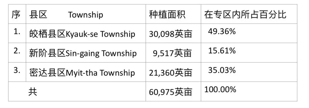 3个县区中,以皎栖县区种植面积为最多,几乎占全专区种植面积的一半。现在2025—26财政年度冬作物种植季节,皎栖县区目前种植31,099英亩,比上一年度多种植1千英亩。期望这种植工作能获得成功,为当地民众们生产出足够的豆类食品来。