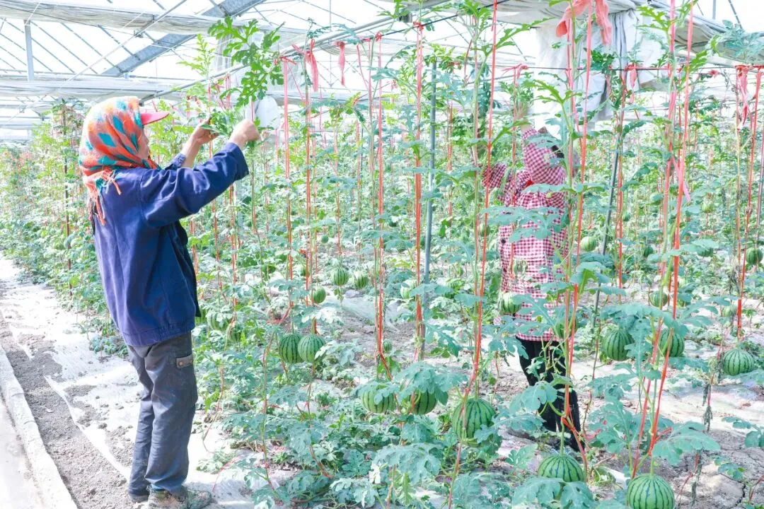 在兴垦科技,西瓜采用吊蔓种植,藤蔓沿着吊绳向上生长,通过这种垂直种植技术,使土地利用率提高一倍,亩产可达2500斤,科学的光照管理和精准的水肥控制,使西瓜糖度比传统种植高出近3个点,品质显著提升。洋葱种植则展示了精准农业的实践成果,从集约化育苗到高标准定植,采用机械化作业和标准化管理,配合滴灌系统和地膜覆盖技术,“精准育苗—高效定植—科学管理”的完整现代化农业闭环。