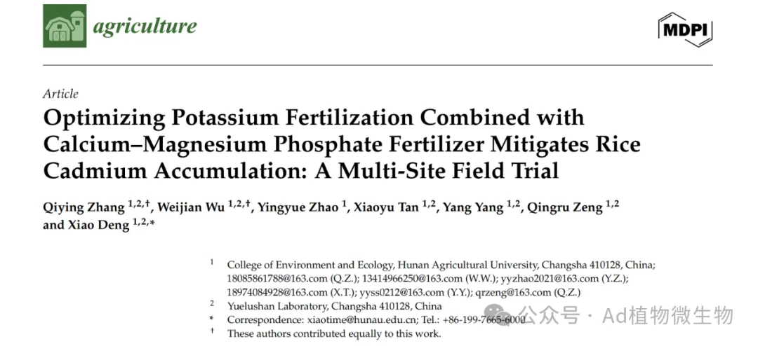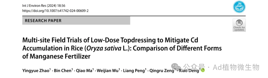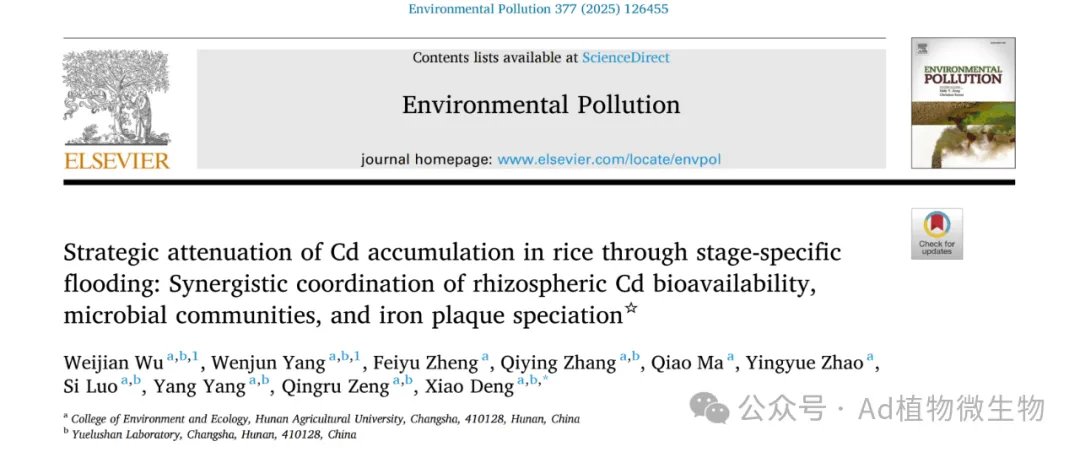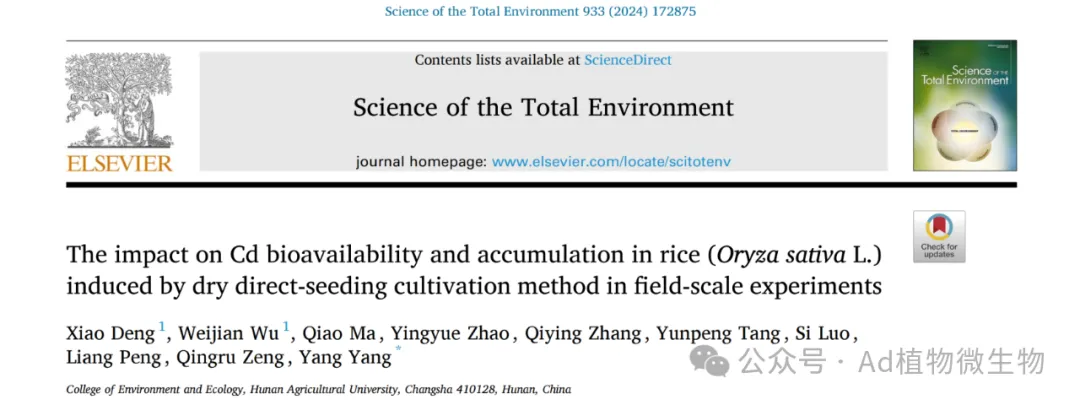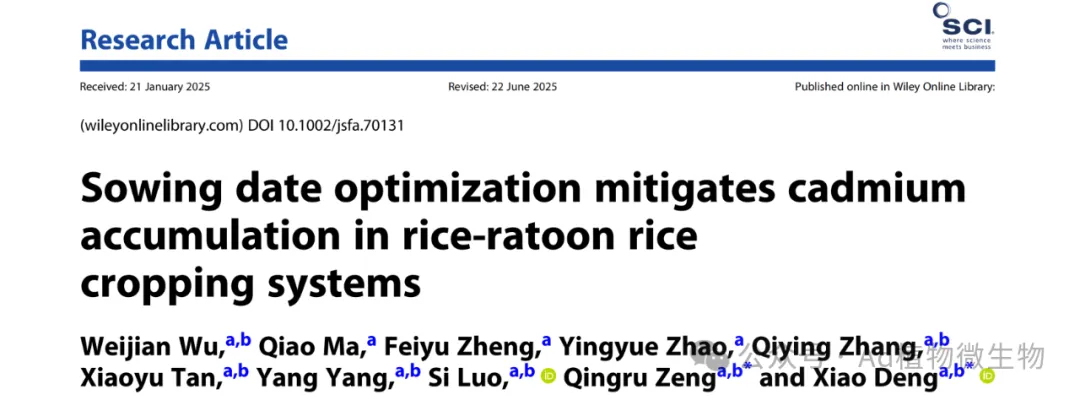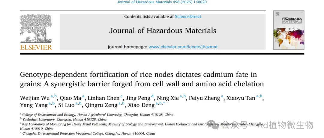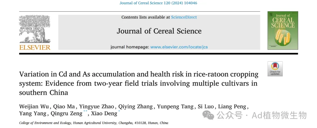 近期,湖南农业大学环境与生态学院农田污染过程与生物修复团队曾清如教授、邓潇老师聚焦我国南方稻区农田重金属污染这一重大挑战,围绕水稻重金属污染的农艺阻控与安全生产开展了系统性研究,取得了一系列创新性成果。在环境与农学领域权威期刊Journal of Hazardous Materials,Environmental Pollution,Science of the Total Environment,Journal of Cereal Science等发表多篇高水平论文。具体研究成果如下: