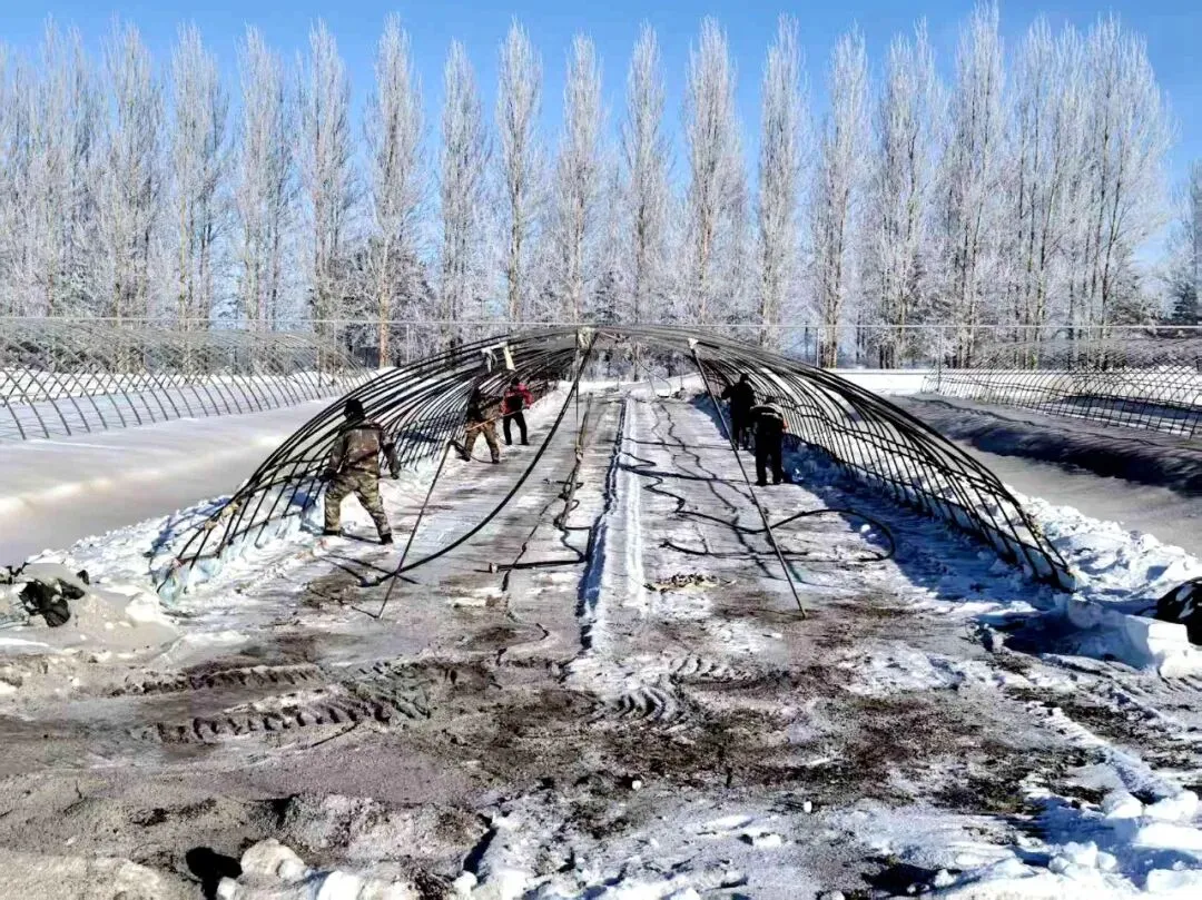 据了解,提前开展水稻育秧大棚扣棚工作是保障育秧质量、抢抓农时、降本增效的关键环节,对培育壮秧、实现水稻稳产增产具有重要意义。各管理区通过视频号、微信公众号、种植户服务群等线上平台,广泛宣传早扣棚的技术优势,有效提升种植户早动争主动的积极性。在生产一线,农业技术人员每日深入棚区,面对面指导清雪、扣棚、固棚等技术要点,协助种植户科学开展作业。针对劳动力不足的家庭,各管理区通过统一调度机车、协调人力支援等方式,提供精准帮扶,有效纾解了生产实际困难。此外,农场积极推广“户间合作、人机齐上”的清雪扣棚模式,引导种植户结成互助小组,分片推进、协同作业,既提升了工作效率,也保证了作业质量。