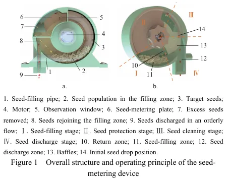 摘要:气力式小麦排种器在高速作业下易因充种效果不佳造成漏充现象,不利于精密播种效果。该研究所设计排种器采用机械气力复合充种的方法,通过对型孔处通孔结构和充种空间进行优化,以其提高充种效果和携种稳定性。该研究通过对小麦排种器的工作过程进行分析,阐述充种和清种过程的工作原理,探究了种子填充性能和携种稳定性的影响因素,并引入DEM-CFD仿真方法进行工作过程模拟。