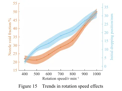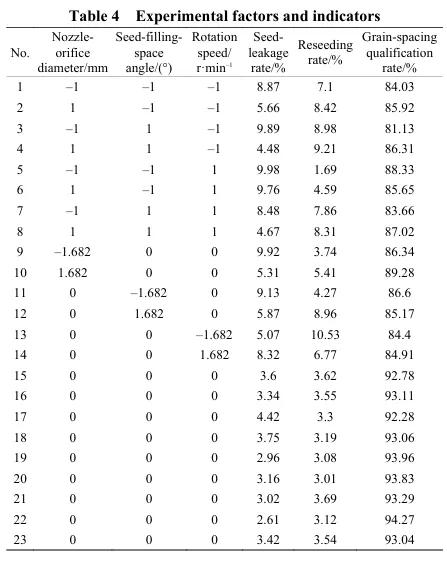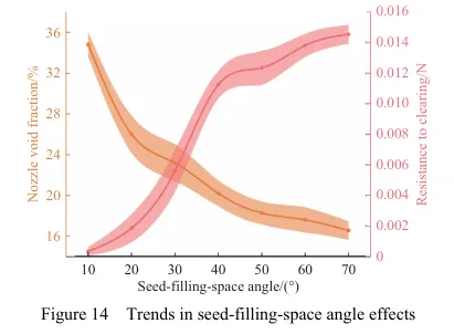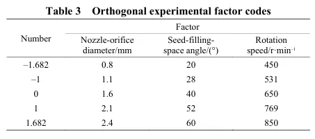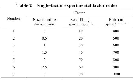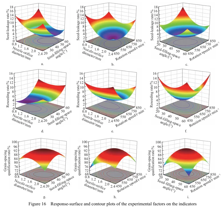 确定通孔直径、充种空间和转速为影响因子,在微观角度上分析对型孔空隙率、抗清除力和初始下落位置的影响趋势。在宏观尺度上定义漏播率、重播率、粒距合格率为性能评价指标,得到各影响因子的主次顺序和交互作用。