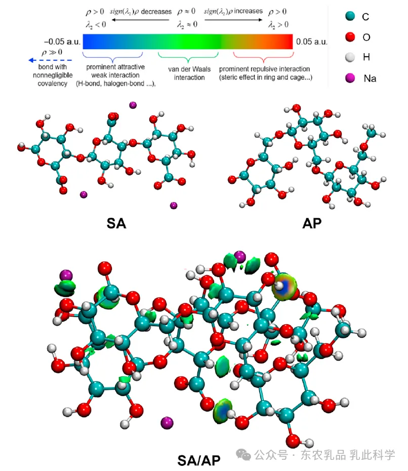 图3. 海藻酸钠(SA)与当归多糖(AP)结合用于IGMH密度泛函理论(DFT)计算的示意图。