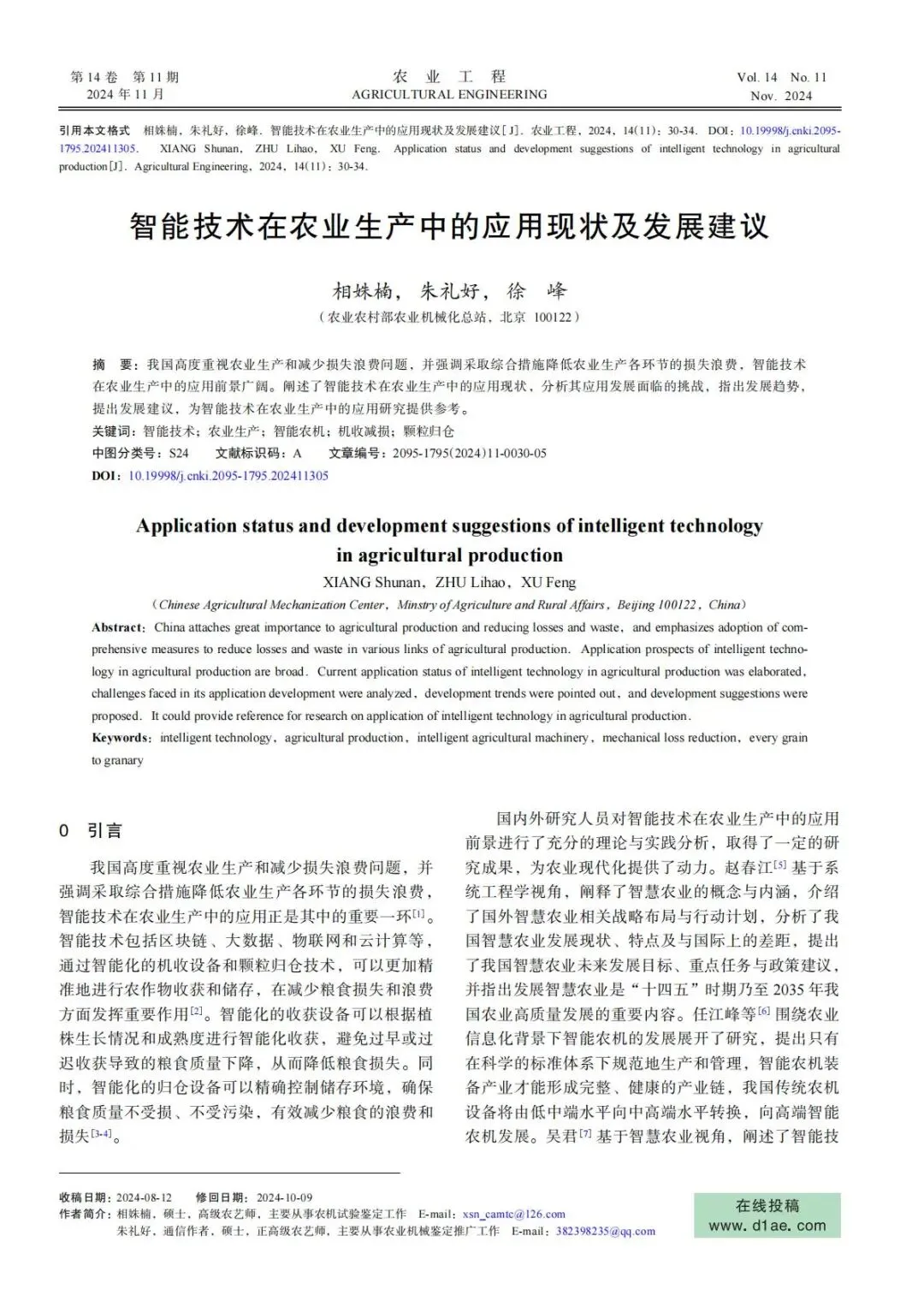 当前位置:首页>农业>农业农村部农业机械化总站:智能技术在农业生产中的应用现状及发展建议