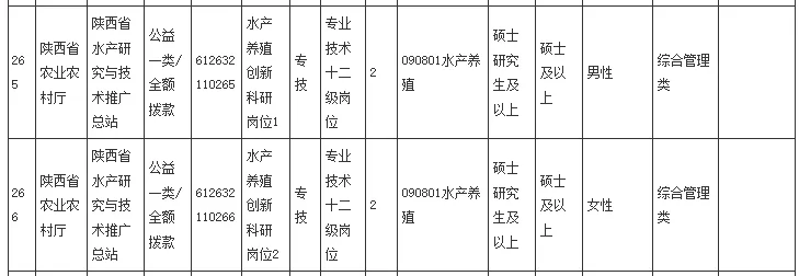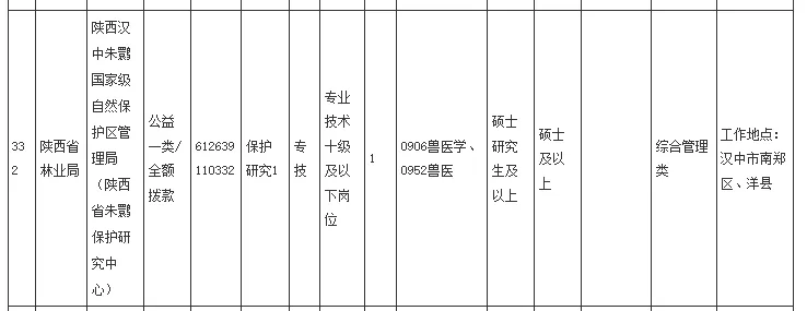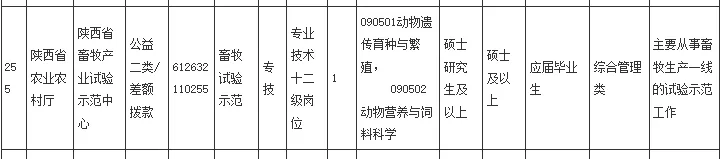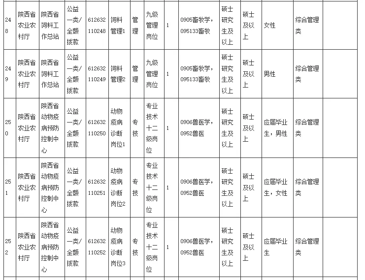 【陕西】陕西省农业农村厅及林业局等省属事业单位招聘兽医、畜牧及水产硕士