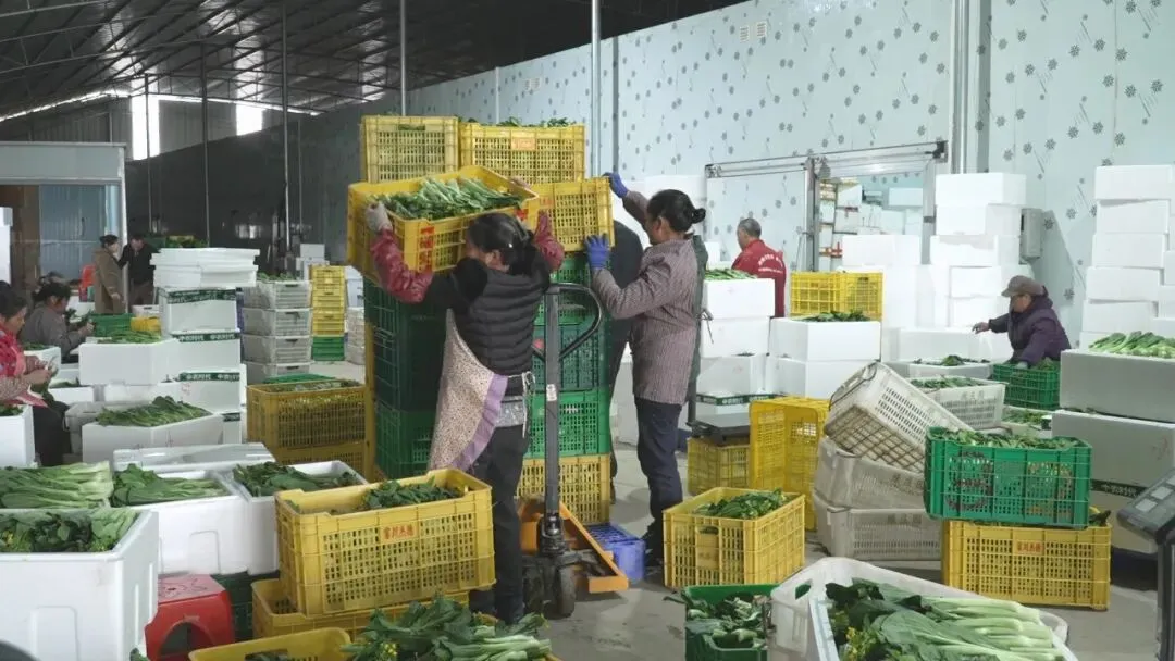 从“种得好”到“卖得俏”,品牌销售链越走越宽。富川不仅注重蔬菜的设施化生产,更在品牌打造和市场销售上持续发 力。依托粤桂协作机制,富川蔬菜积极融入大湾区市场,成功认证了15个大湾区“菜篮子”生产基地,形成了“贺州供港”的品牌影响力。在销售端,富川构建了“基地直采+批发市场+商超专柜+电商直播”的多元销售网络。一方面,与深圳海吉星、江南市场等大型批发市场建立稳定供销关系;另一方面,引导企业与华润万家、天虹等大型商超开展“农超对接”。同时,抢抓电商直播风口,培育本土电商人才,让富川的优质蔬菜通过“云端”走进千家万户。
