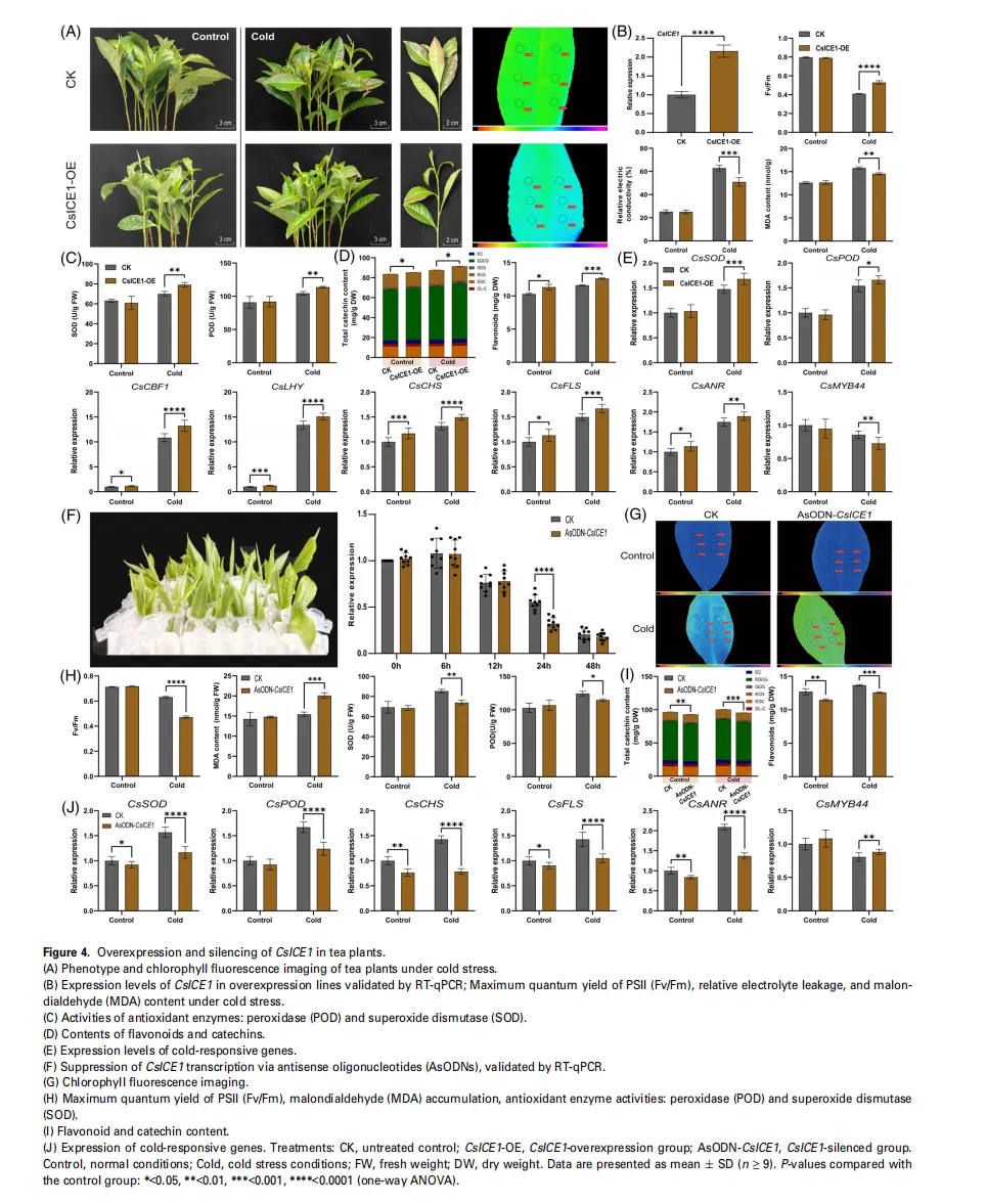 在茶树中过表达或沉默CsICE1会显著影响冷敏感性。