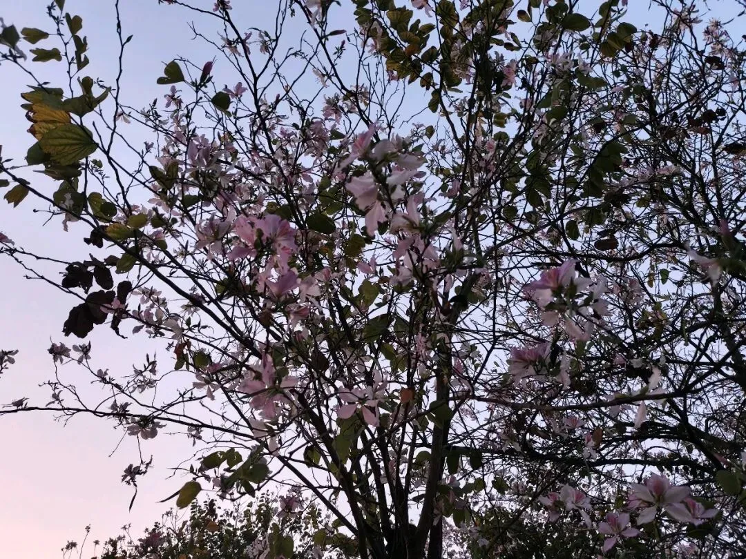 受到大学同学阿唐一家的邀请,我们来到姹紫嫣红的华南农业大学相聚。我们来到华农竹园餐厅门口时,唐一家已经到门口来接我们了。我们还是忍不住想先去看花,唐带着我们,她儿子推着骨折的欣。欣很荣幸,昨晚博士叔叔给她开车门,今晚中科大未来的博士推她来赏花🌸。可惜,我们来迟了,天已经暗了下来,这么多开得正旺的花,无法拍到。两家人边吃边聊,从聊日常聊到物理学,中科大高材生的解释让我们文科生增长了不少知识。不必等中秋月圆,当年大学同窗四年,此刻同座广州城,同盏茶,便是最好的团圆。三十年,从一个人的同窗,到两家人的知己。千里共婵娟,不如同檐共清欢!