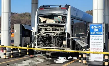 图为韩国一个加氢站发生的一起氢动力公交车爆炸事故现场(图片来源于网络)