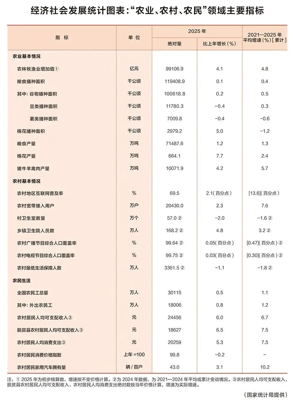 重点关注|经济社会发展统计图标:“农业、农村、农民”领域主要指标