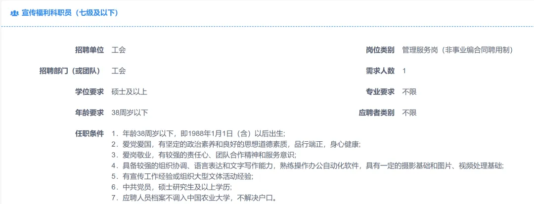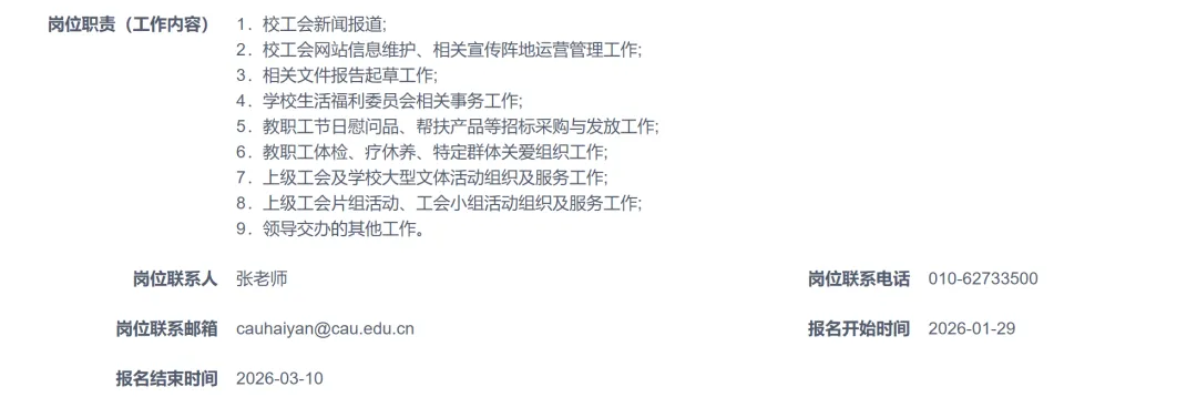 北京高校,中国农业大学工会公开招聘,3.10截止