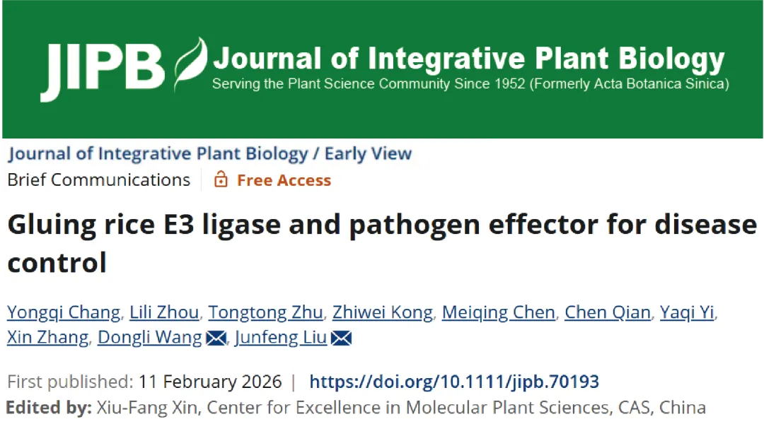 近日, JIPB在线发表了中国农业大学植物保护学院刘俊峰教授团队题为“Gluing rice E3 ligase and pathogen effector for disease control”的文章 (https://doi.org/10.1111/jipb.70193), 首次明确了分子胶策略在农药研发上应用的可能性。