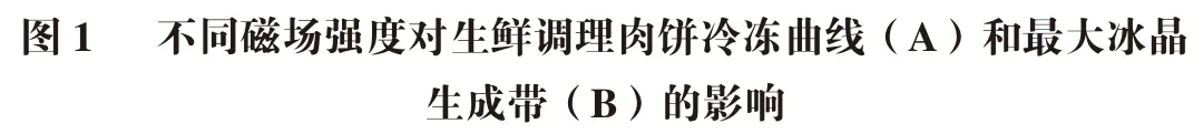 1.1 不同磁场强度对调理肉饼冷冻曲线的影响
